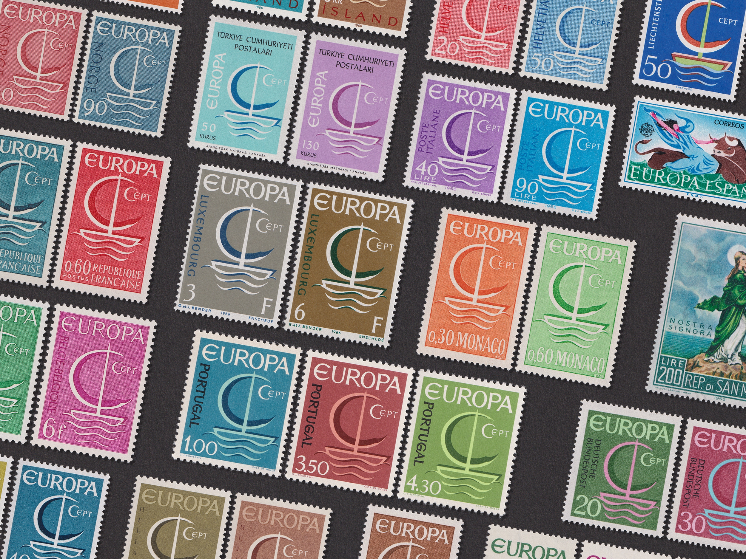 Набір із 19 повних випусків EUROPA CEPT (повна серія або окремі марки) з усіх 19 країн-учасниць, випущених синхронно в 1966 році.
