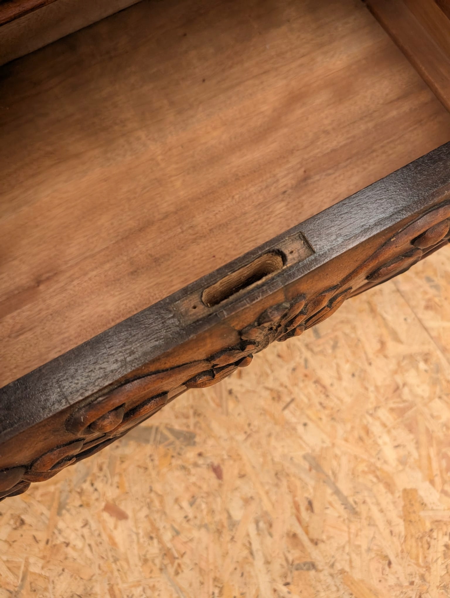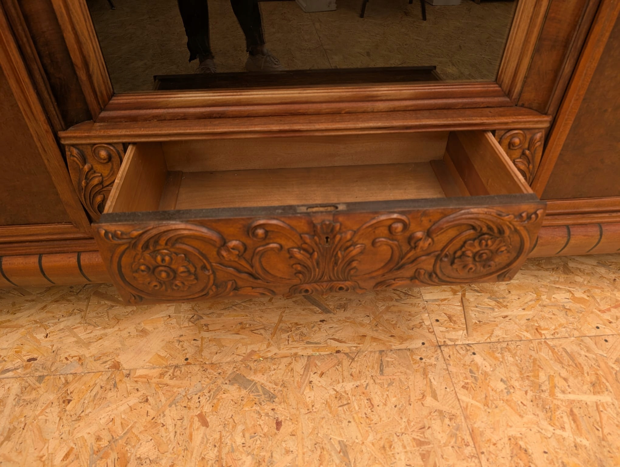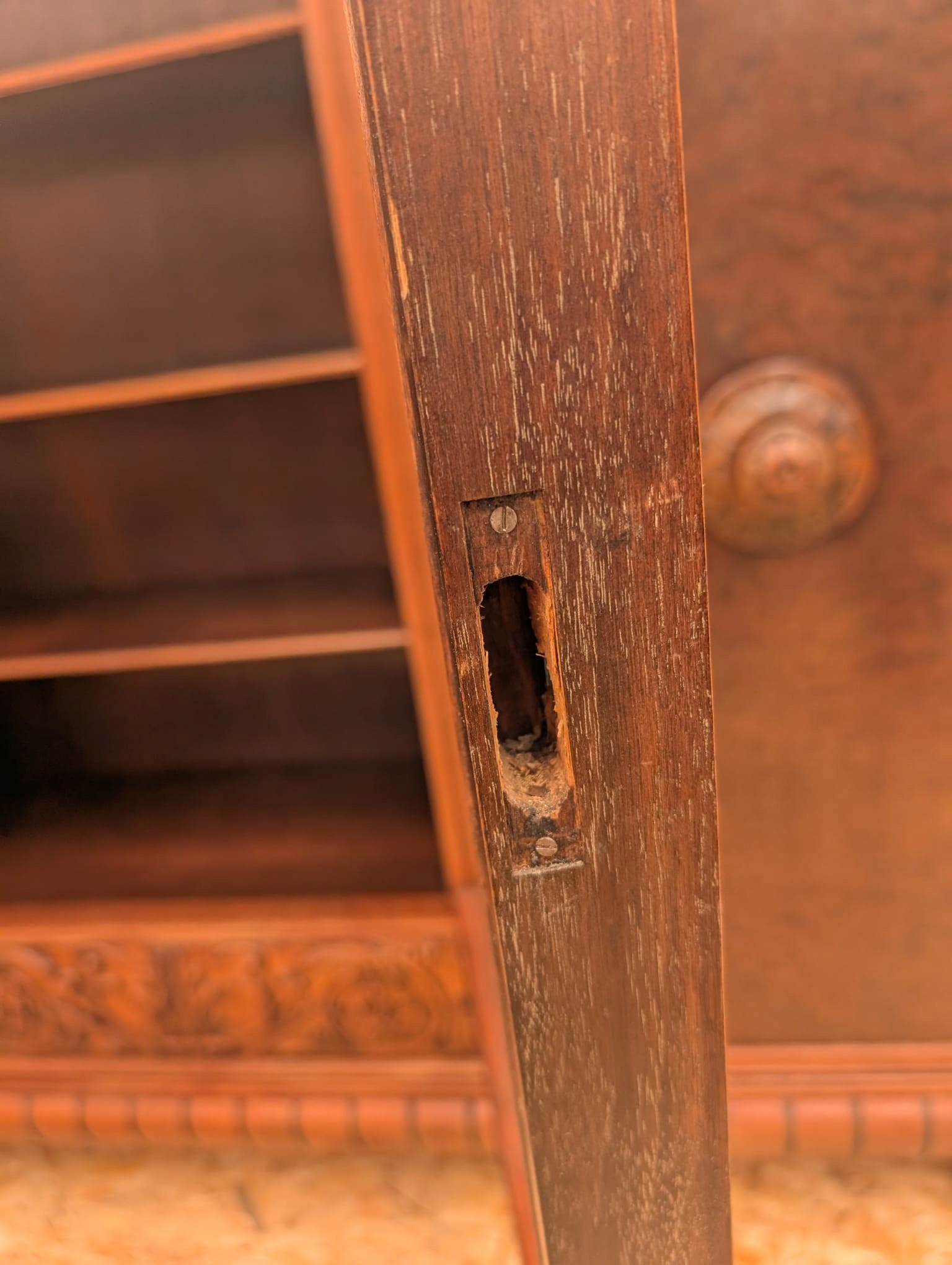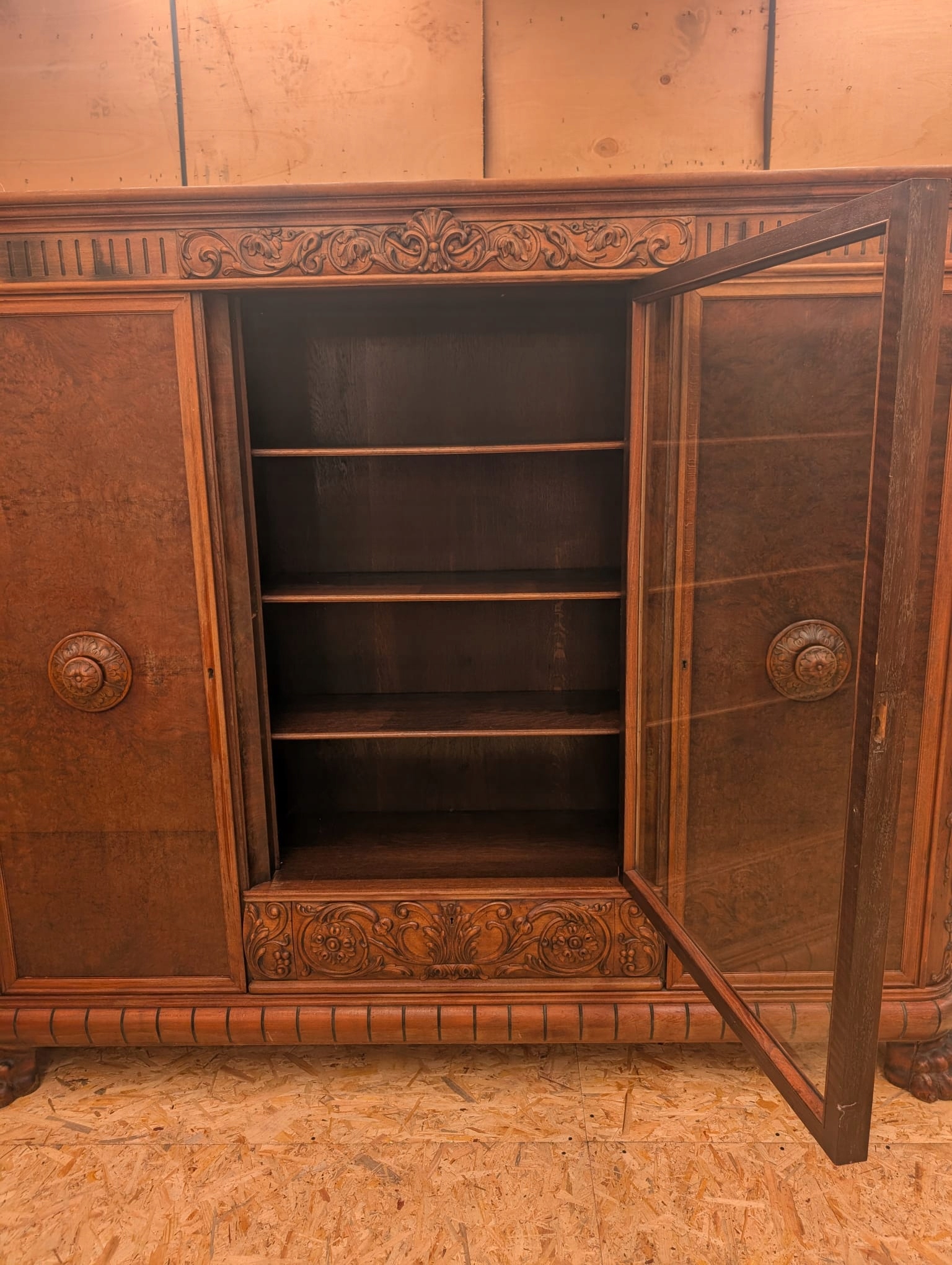 Стильна бібліотечна полиця 1954 року в стилі модерн на лапах лева. Міцна дерев'яна конструкція теплого коричневого кольору. Він має характерні прикраси та різьблення, які надають йому елегантного вигляду. Ідеально підходить для меблювання класичної бібліотеки чи вітальні.