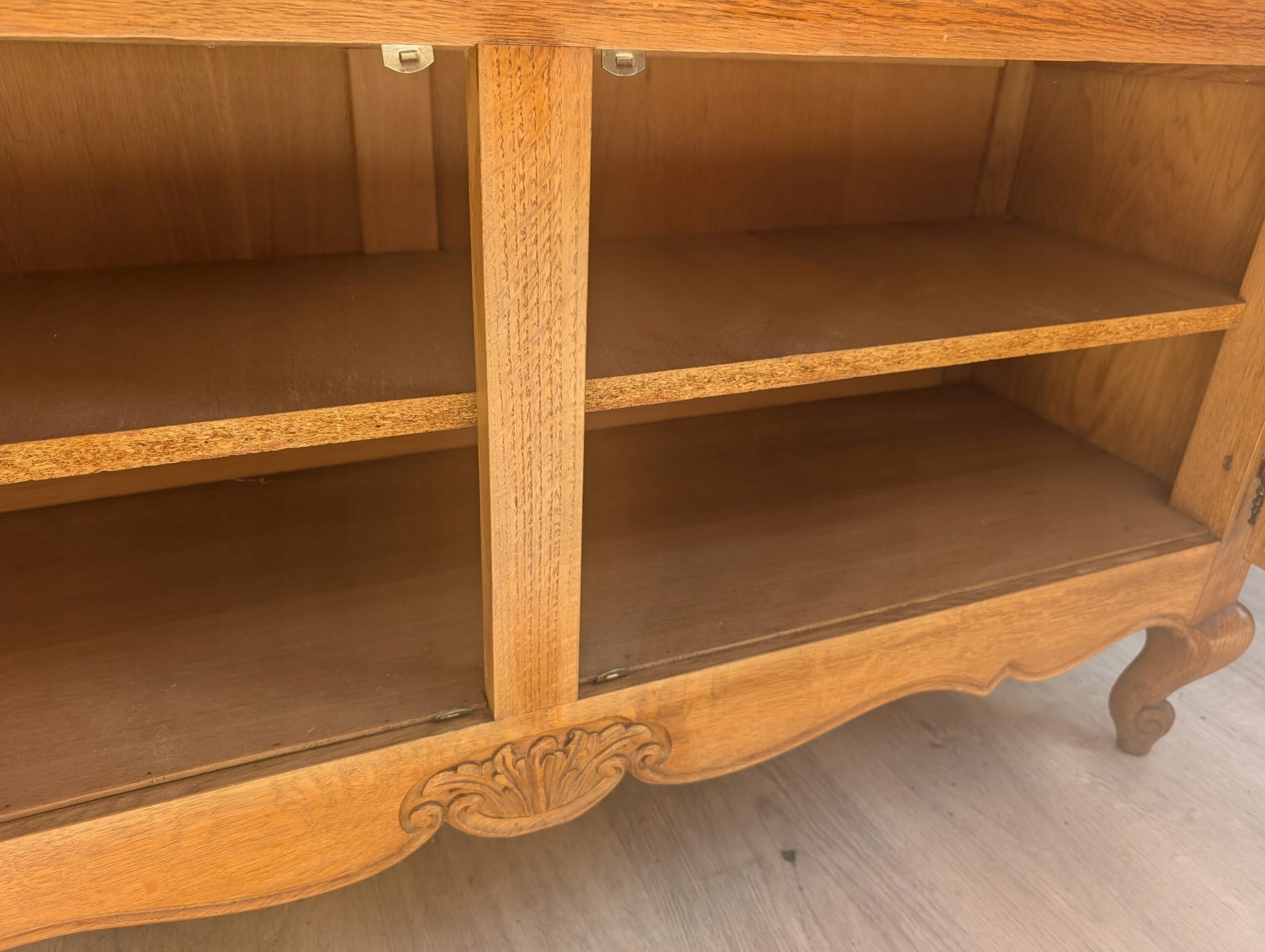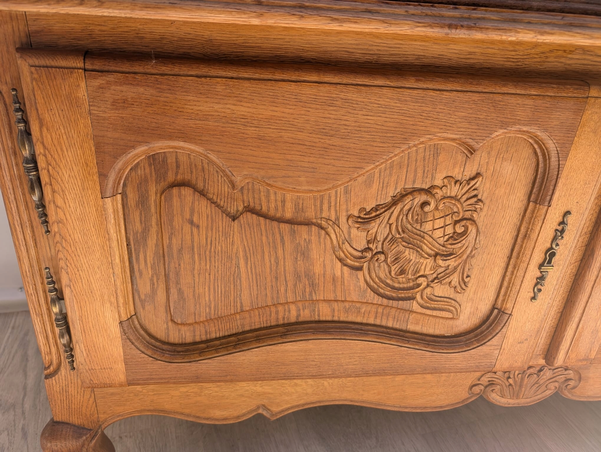 Стильна тумба з антикварного дуба в стилі Людвіка 1950-х років. Меблі мають характерні прикраси та красиві дерев'яні фасади. Ідеально вписується в ретро атмосферу і надає інтер’єру неповторний характер.
