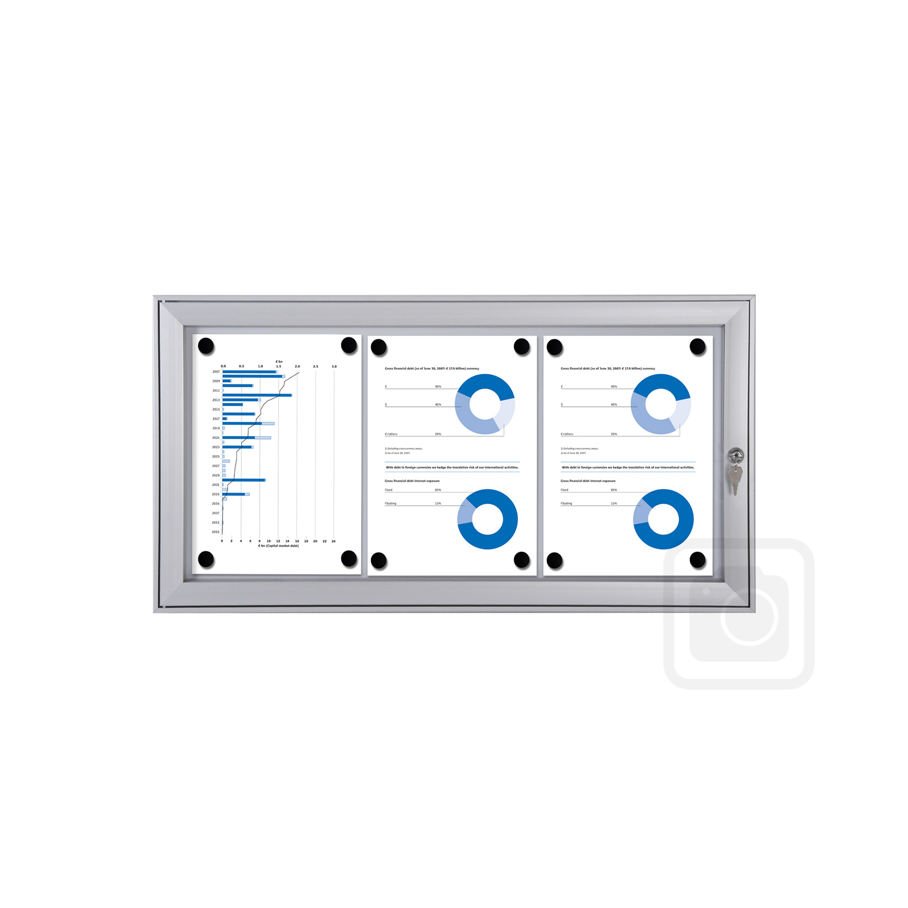 Магнітна інформаційна вітрина з анодованого алюмінієвого профілю, що замикається. Задня частина вітрини виготовлена з листового металу з порошковим покриттям, що робить поверхню магнітною і дозволяє писати маркерами. Ідеальне рішення для сходів, офісів, офісів, шкіл, фасадів будинків тощо.