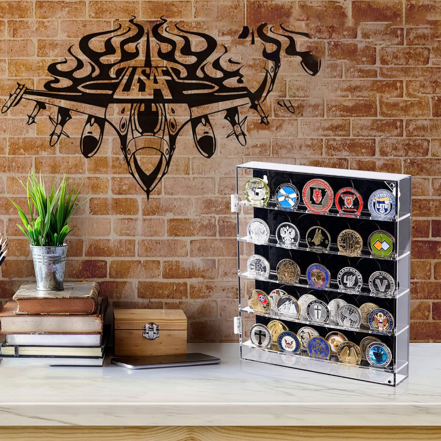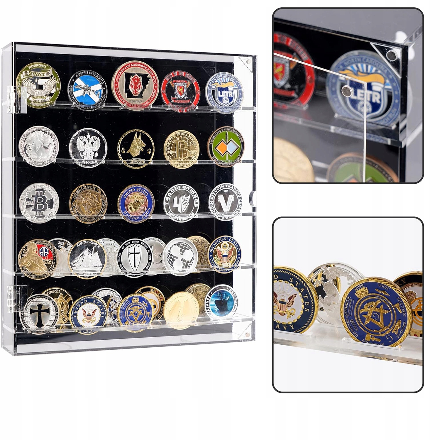 - ★ Магнітний дизайн дверцят: Магнітні дверцята призначені для кращого захисту ваших предметів колекціонування. і монети від пилу, пошкоджень, і монети зручніше зберігати або виймати. Захистіть свої цінні предмети колекціонування. Покажіть свою честь з гордістю. ! !