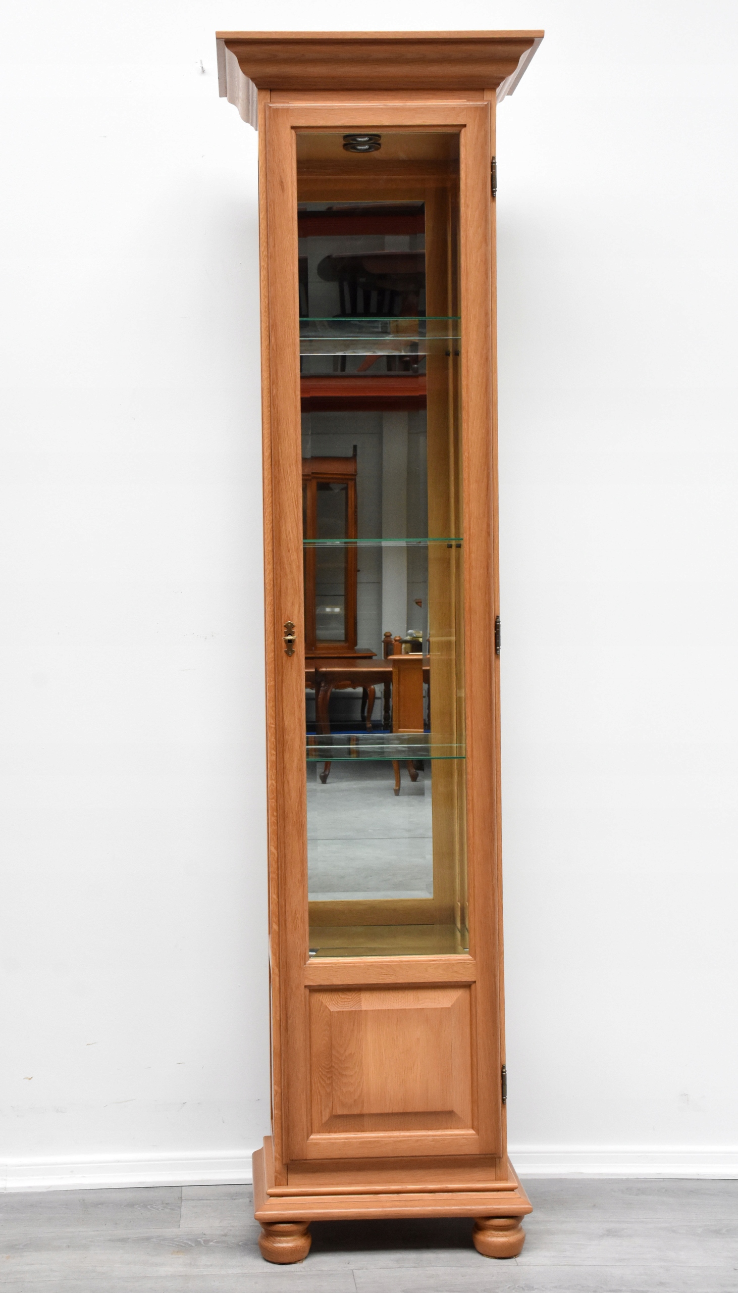 ВІТРИНА ВУЗЬКА ДУБОВА, МІЛЛІОН З СВІТЛЕННЯМ, h198x52x33см
