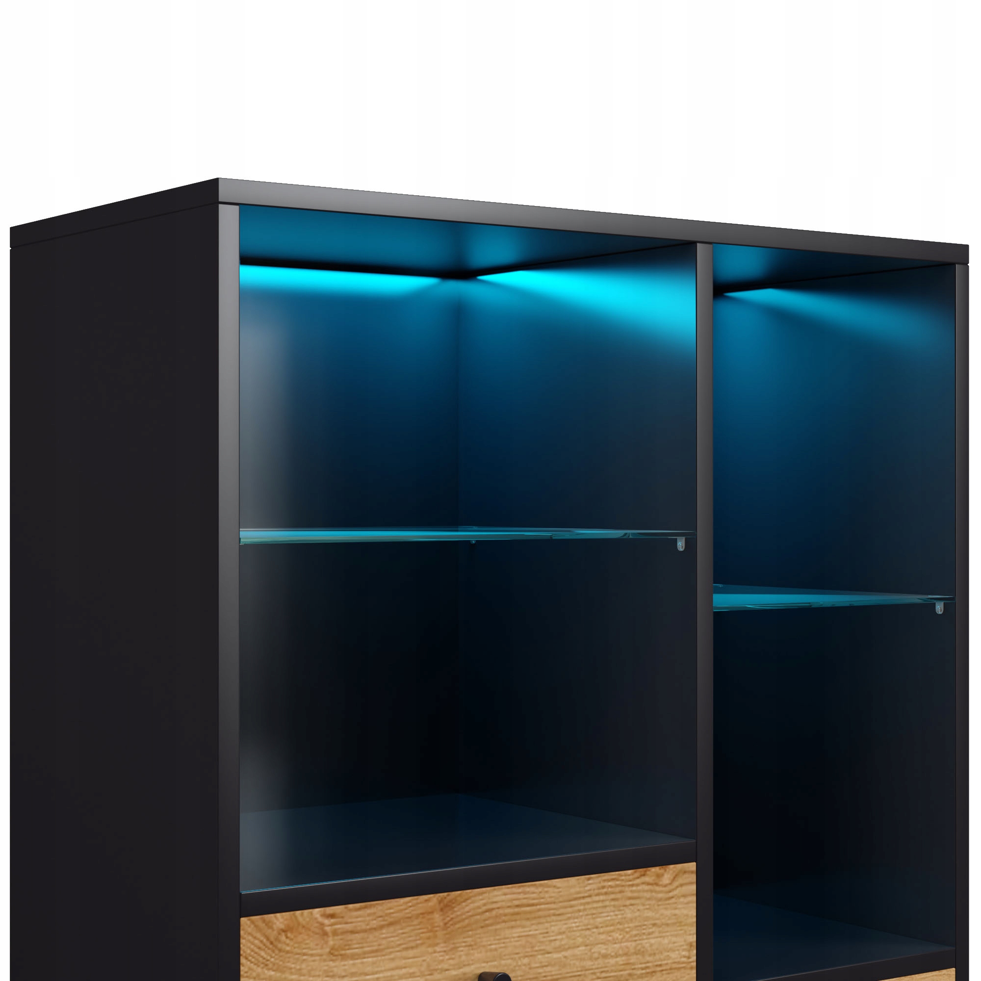 Вітрина з 12-кольоровою світлодіодною стрічкою, ящиками та скляними полицями