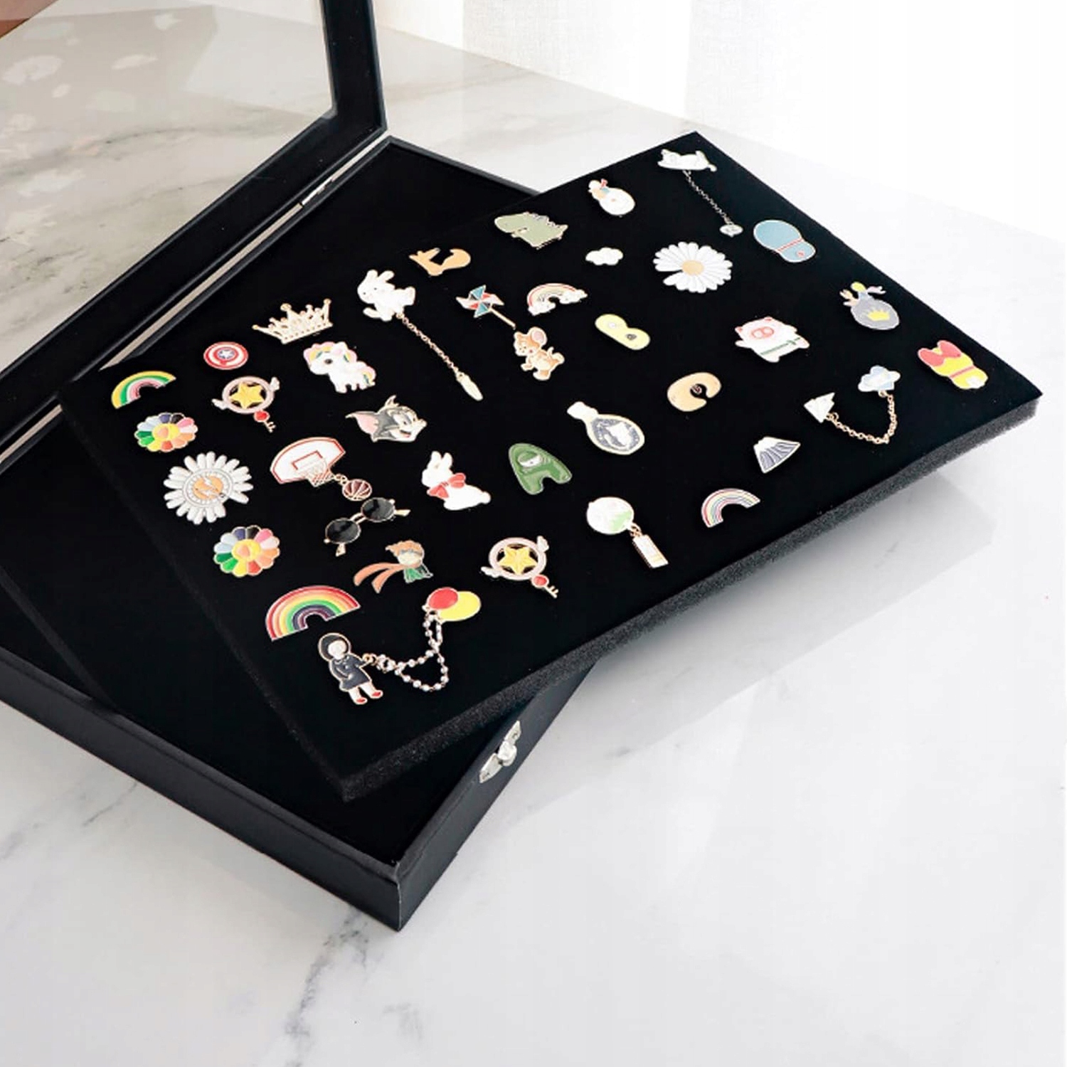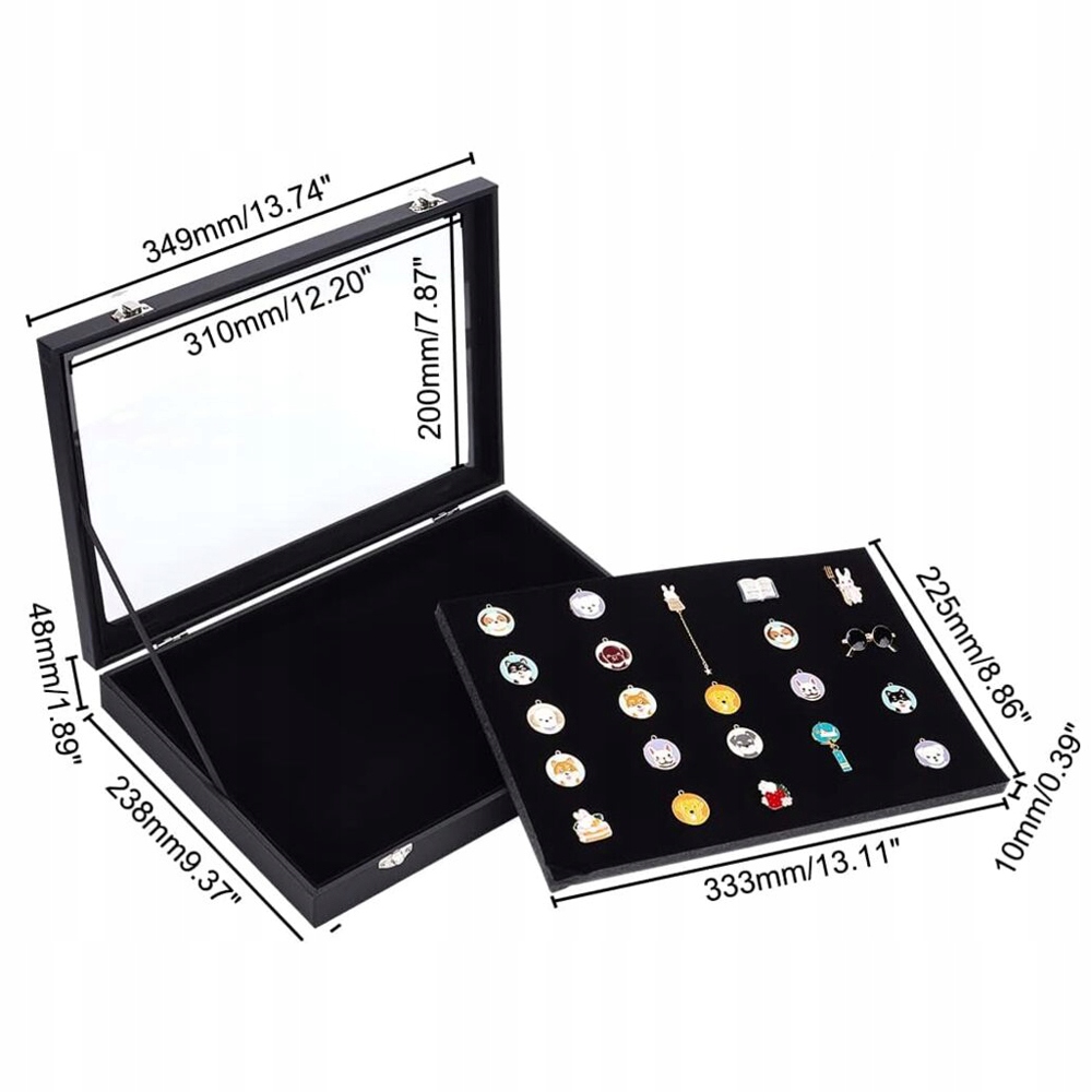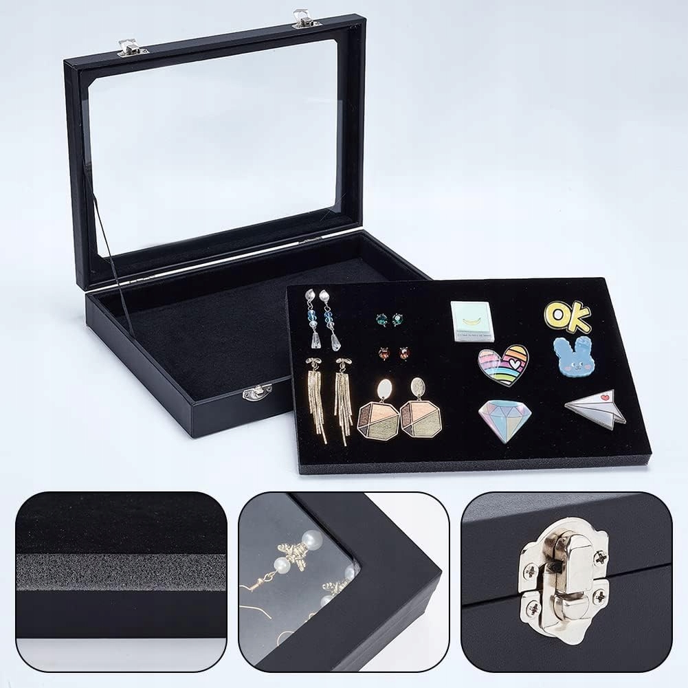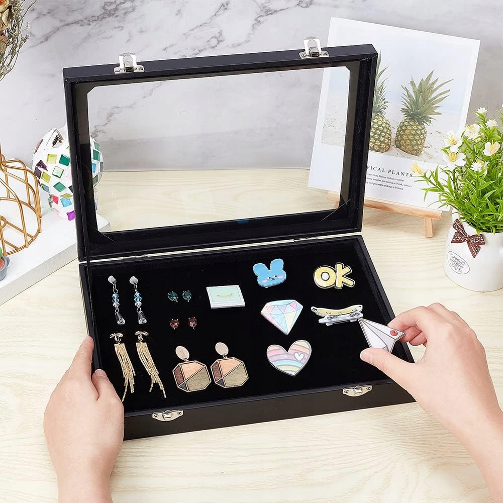 Вітрина має прозору скляну кришку, на якій чітко видно збережені значки, прикраси та кришку, зберігаючи ваші речі чистими та вільними від пилу.
