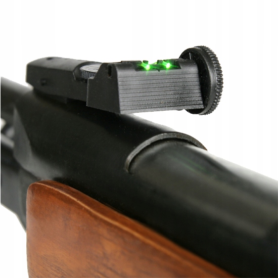 Пневматична пневматична рушниця з меншим натягом, калібр 5,5 мм - однозарядна, оснащена прицільними пристосуваннями з оптоволокном як на мушці, так і на цілику. Прицільні пристосування точно регулюються по вертикалі та горизонталі.