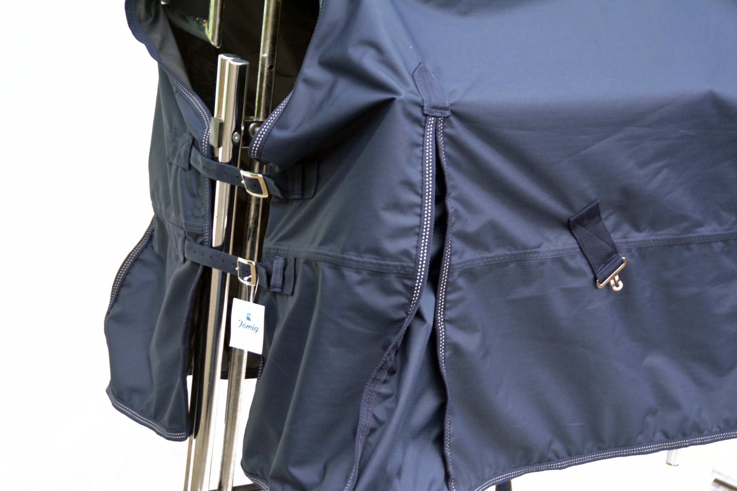Дощозахисний, вітрозахисний килимок, 145 см, 100 г. Виготовлений з поліестеру 600 деньє, він зберігає коня сухим і в той же час забезпечує температурну компенсацію. Водонепроникність: 300 мм. Внутрішній чохол з поліестеру, який запобігає шерсті від стирання. Килимок оснащений поперечними ремінцями під животом. Усі килимки в нашій пропозиції є унікальними на польському ринку. Зверніть увагу: предметом аукціону є килимок, зображений на фотографіях.