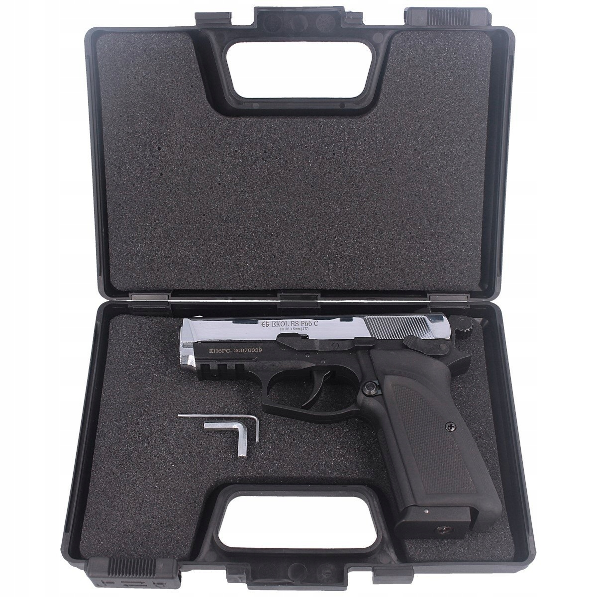 EKOL ES P66C, надлегкий сучасний напівавтоматичний пневматичний пістолет, створений на основі сигнально-газової та тривожної зброї Voltran. Завдяки такому міцному корінню ця одна з найпотужніших на ринку пневматичної зброї зі стрільбою 135 м/с підходить для динамічної спортивної стрільби, безперервної стрільби та тактичних тренувань, а за допомогою додаткових магазинів (опціонально) можна збільшити кількість пострілів, як у справжній зброї.