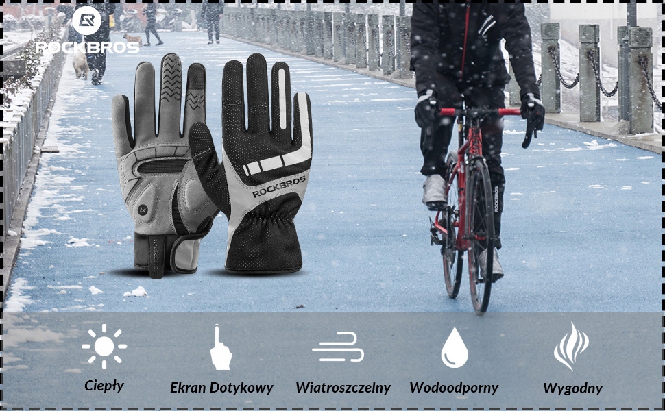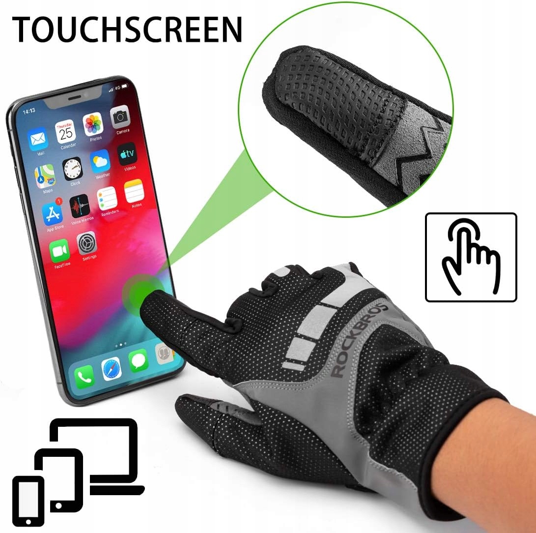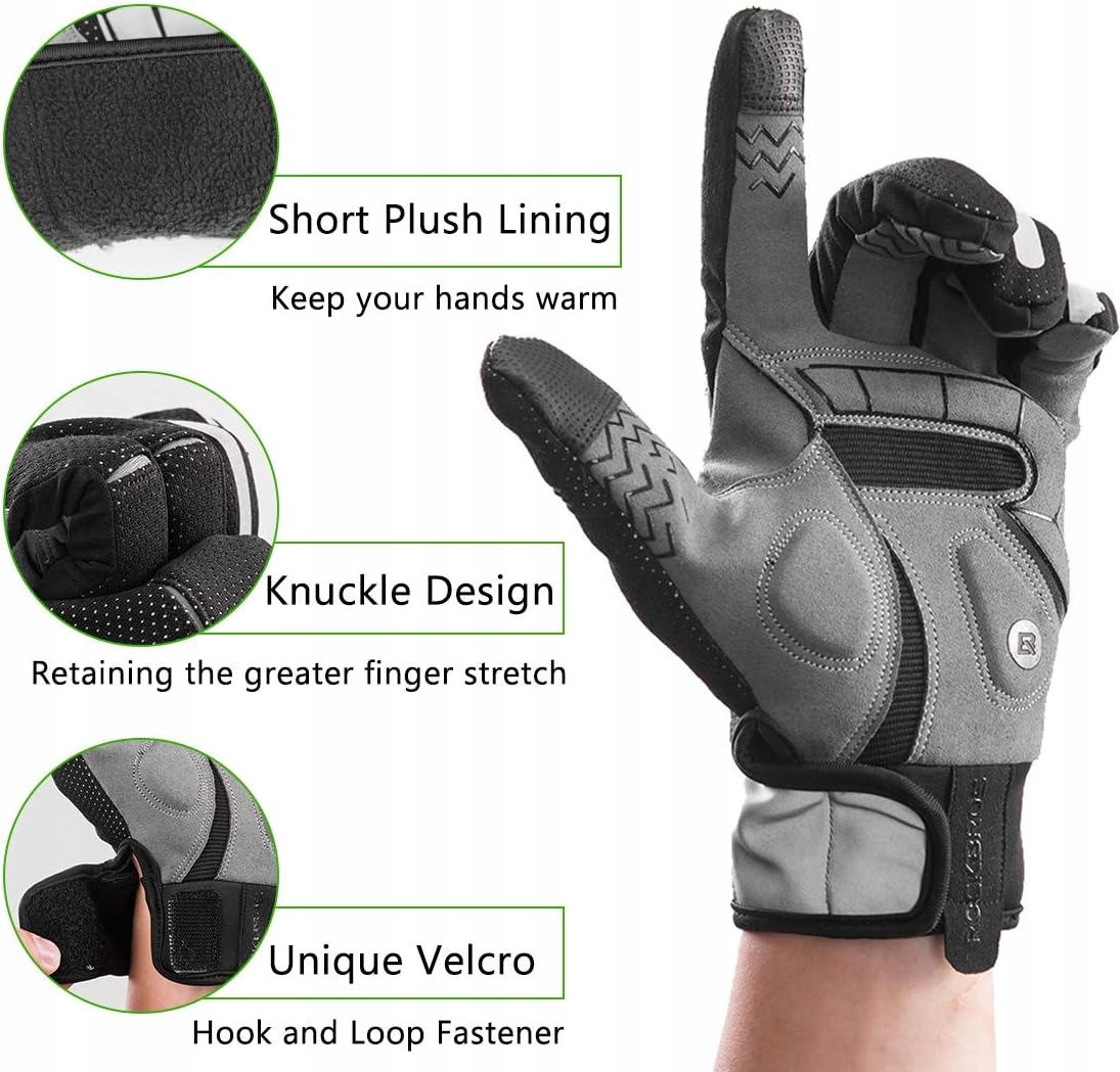 Велосипедні рукавички ROCKBROS, що захищають від вітру, із теплим сенсорним екраном і гелем із протиковзкою підкладкою, пружинні світловідбиваючі рукавички для MTB BMX, шосейний велосипед, велосипед, чоловіки, жінки XL