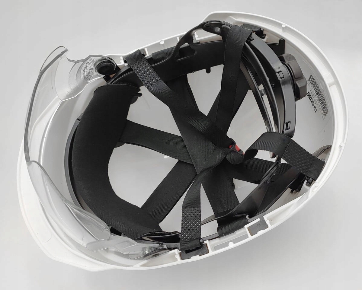 КОНСТРУКЦІЯ ШОЛОМА: короткий козирок, бокові вентиляційні отвори, 6-точкові поліетиленові ремені з 6 текстильними ремінцями, регулювання розміру за допомогою тріскачки від 52 до 63 см, інтегровані захисні окуляри з антиподряпинами стандарту K і антизапотівання N, 4-точковий підборідний ремінь, текстильна пов’язка на голову/пот 3D LEGERETE. Шолом сумісний із тримачем ідентифікатора (6POBA) і навушниками (6MX3000NSI).