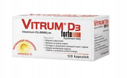ВІТРУМ Д3 форте містить 2000 МО. вітамін D, що полегшує підтримку його належного рівня в організмі. Відповідна концентрація вітаміну D в організмі сприяє належному функціонуванню імунної системи та належному функціонуванню м’язів.