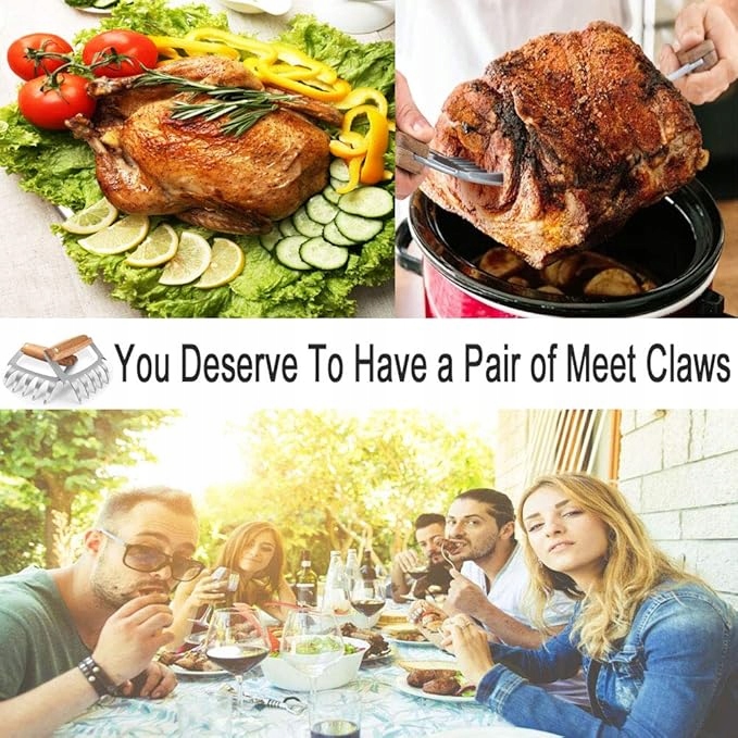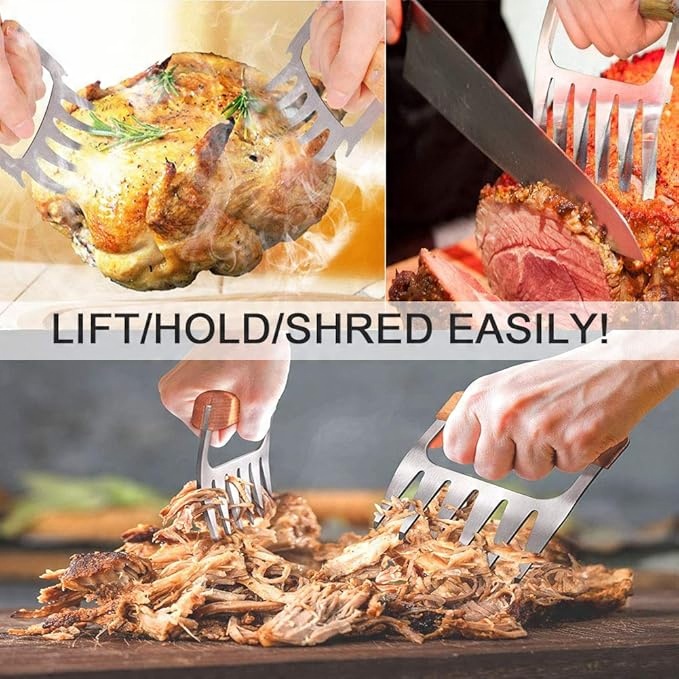 Ці міцні та гострі вилки у формі кігтів - чудовий інструмент для подрібнення, смикання та різання м’яса. Ідеально підходить для посуду на грилі, таких як витягнута свинина, яловичина, курка, індичка або шинка.