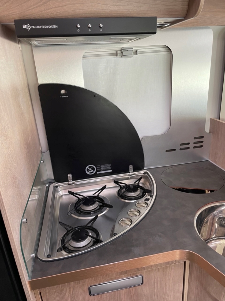капот для кампанії системи оновлення Pati Cailer Kamper. Пристрій оснащений знімним фільтром, який можна промивати, дві лампи та вентилятор з двома ступенями потужності. Він підключений до інтер’єру з гнучким трубчастим провідником і може бути встановлений на даху кемпінгового транспортного засобу завдяки стійкому до розкладених умов. P>