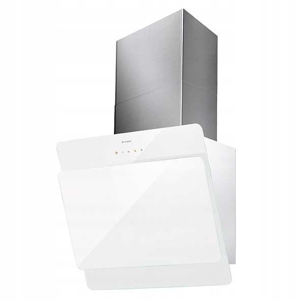 Настінна, діагональна витяжка, ширина 55 см, біла, безпечне скло з Світлодіодне освітлення та енергозберігаючий блок двигуна EVO 800.
