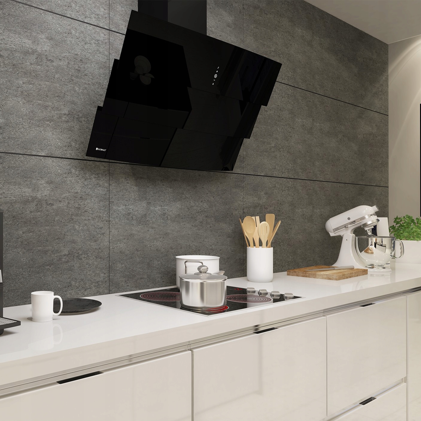 - Функціональне сенсорне управління дозволяє керувати витяжкою Vintio 90.2 Black кінчиком пальця. Додатково в комплект входить пульт дистанційного керування, який дозволяє дистанційно регулювати налаштування.