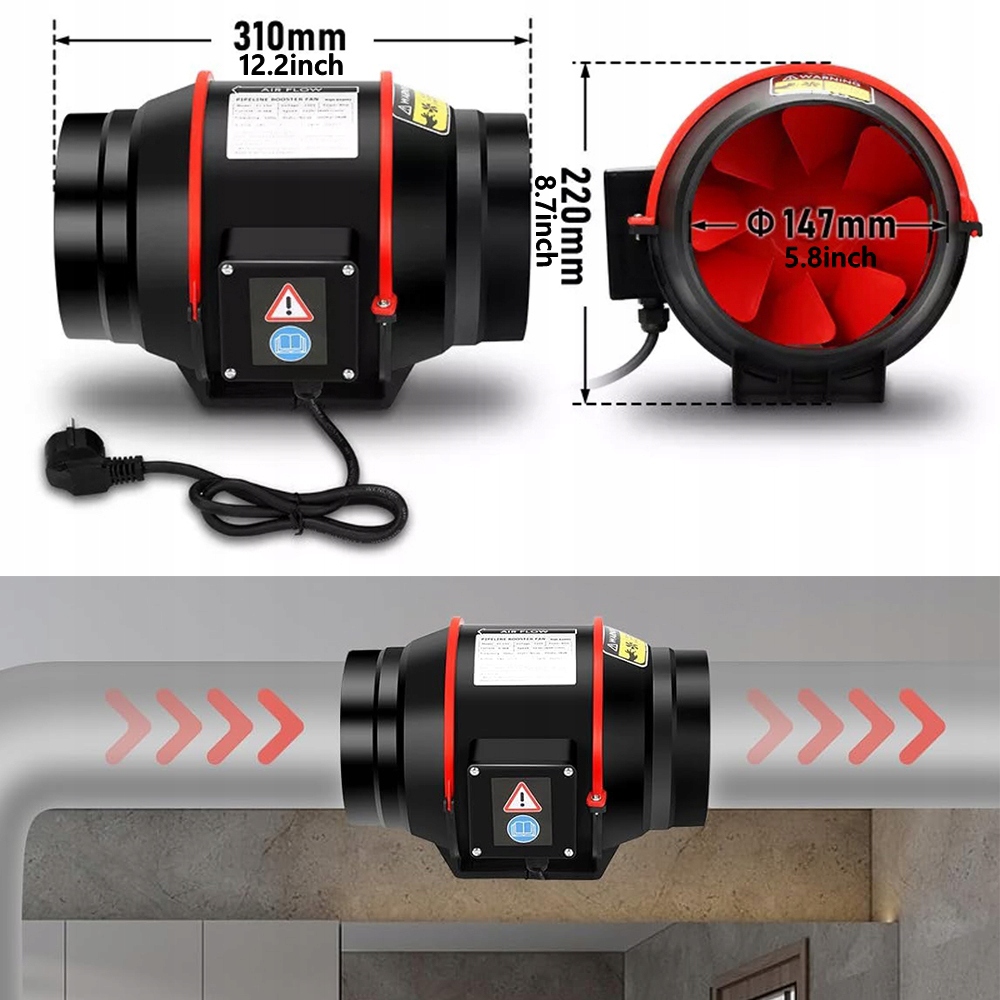 💨♻️【Широкий діапазон застосування】: Канальні вентилятори можна використовувати для вентиляції та очищення повітря в промисловість, будинок і садівництво. Витяжні вентилятори для ванних кімнат, майстерень, кухонь, підвалів, теплиць, наметів для вирощування тощо.
