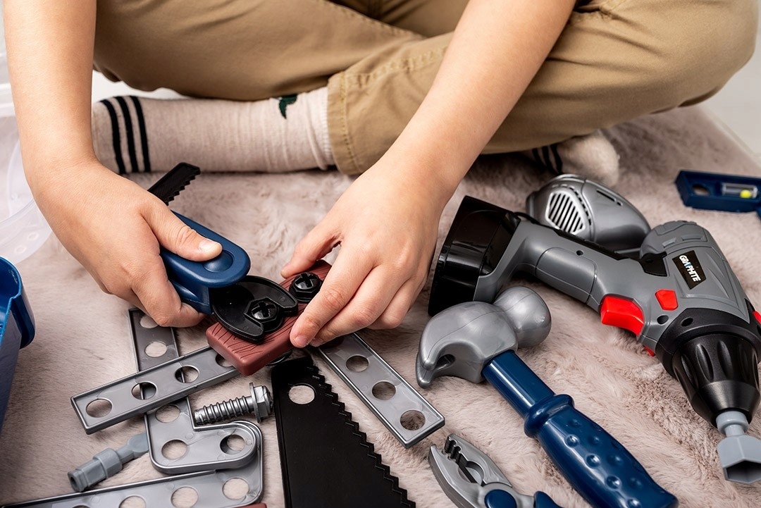 Інструменти, виготовлені з міцних матеріалів, заохочують дітей досліджувати основи саморобки та дозволяють дітям наслідувати своїх батьків. робота чи ремонт саду чи квартири.