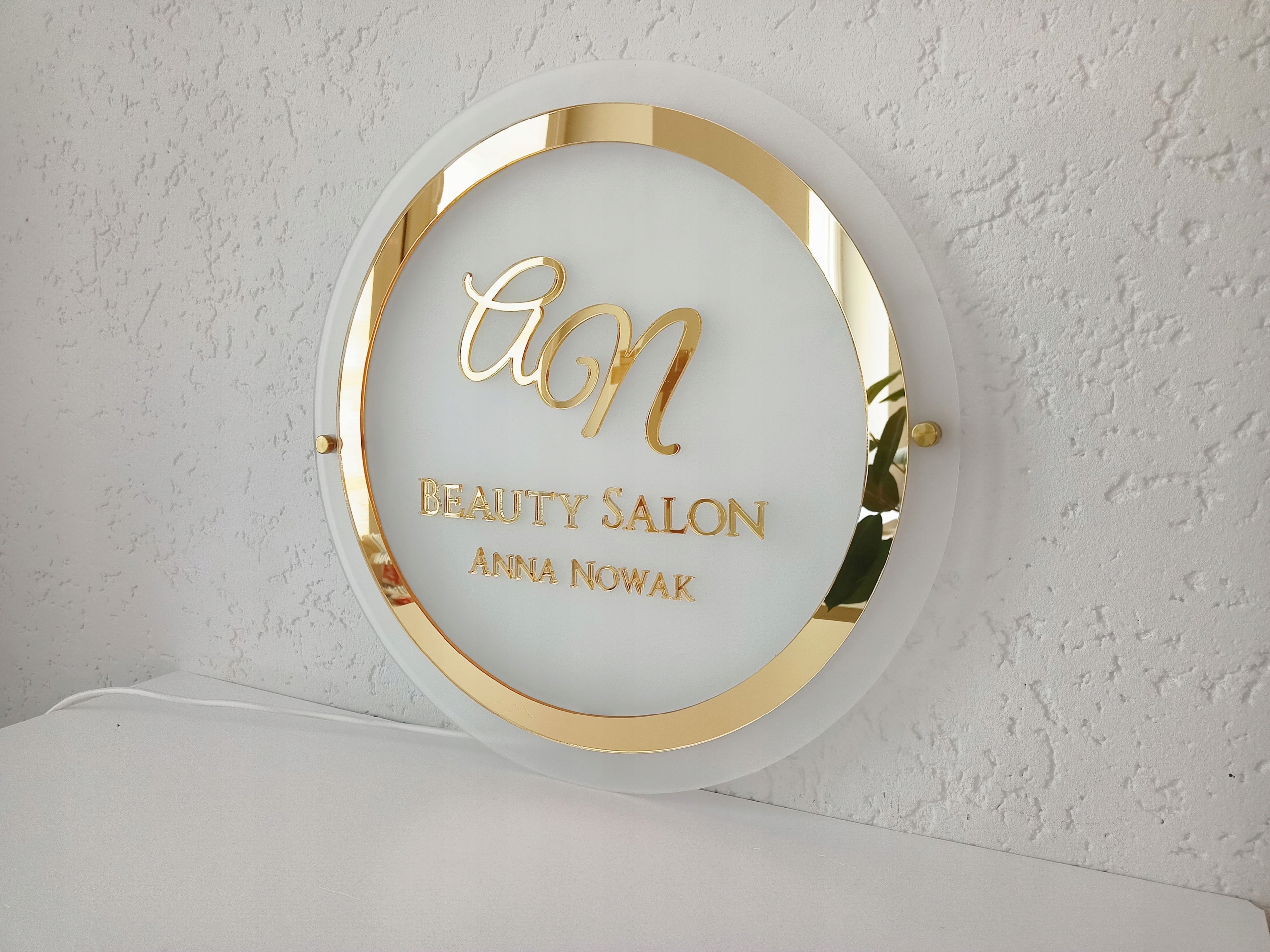Вивіска виготовлена з матової основи з оргскла. (напівпрозорі), а написи та логотип виконані кольоровим або дзеркальним (золото, срібло, рожеве золото) акрилом.