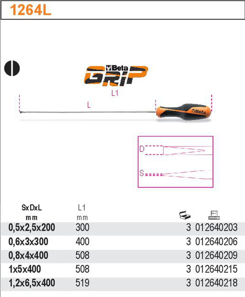 Викрутка з довгим шлицем BETA GRIP 1264L 5 x 400
