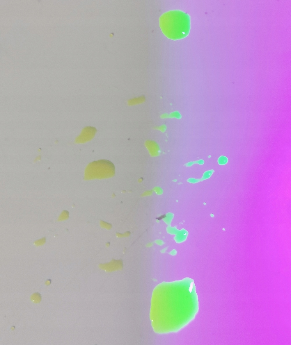 Розведений барвник інтенсивно сяє під ультрафіолетовим світлом.