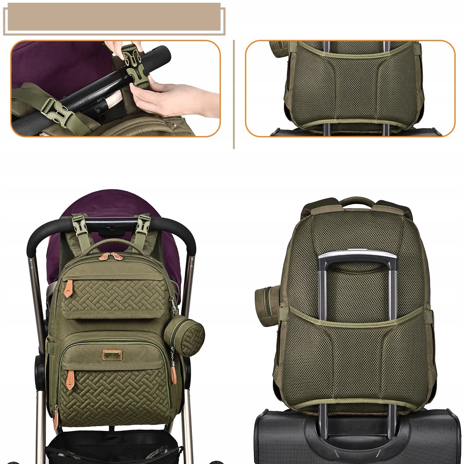 універсальні та практичні - ця унісексна дитяча сумка може бути використана як рюкзак або сумка або прикріплена до візку, використовуючи вбудовані -знімні затискачі для візки. Елегантний і підходить для багатьох випадків, таких як покупки, подорожі тощо. Крім того, ззаду є багажний пояс, який легко рухається на будь -якій ручці, що дозволяє вам подорожувати, не використовуючи руки