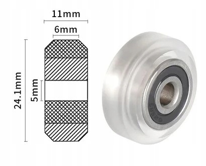 - довговічність- виготовлені з полікарбонату (ПК), завдяки якому вони характеризуються значно більшою міцністю порівняно з чорними роликами Дерліна з поліоксиметилену (POM) 4 , Тверда конструкція - стійка до відхилення матеріалу