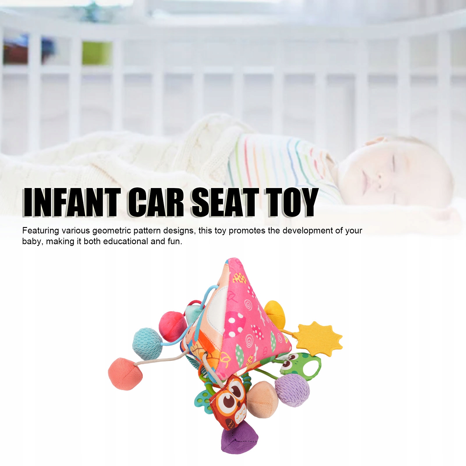 1. Безпечні матеріали: Виготовлені з безпечних та твердих матеріалів, іграшка цієї дитини гарантує, що діти можуть безпечно грати без побоювань щодо свого здоров’я. Геометричні візерунки: У випадку з різними геометричними конструкціями ця іграшка сприяє розвитку дитини, що робить її як навчальною та смішною. Побудований -Sandbat: З побудованим храком, який видає чіткий звук, ця висяча іграшка стимулює сухість дитини, зберігаючи їх залучення та цікаво. Функція висячого висячого: Висячий компонент робить цю іграшку, яка підходить для використання в домашніх умовах або подорожуючи з малюком. Красиві конструкції мультфільмів: прикрашені чудовими конструкціями мультфільмів, ця іграшка привертає увагу вашої дитини та збільшує задоволення від взаємодії для батьків.