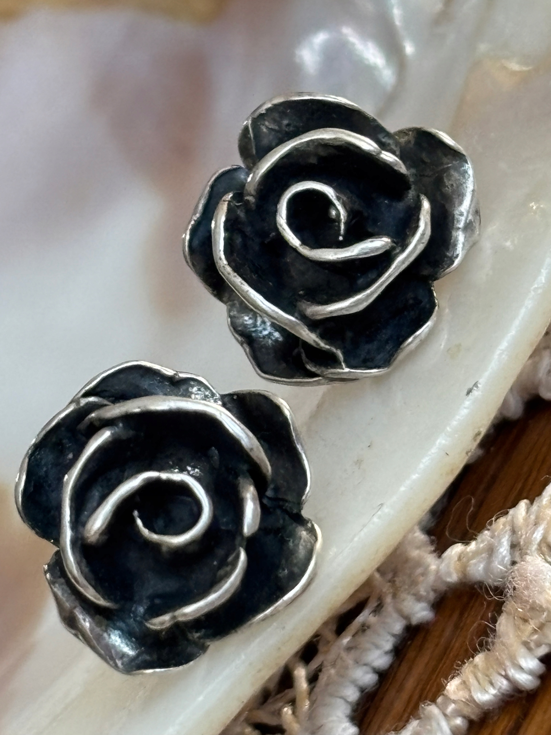 Візерунок гравіювання Старі срібні сережки-гвоздики квіти Троянда набір частин