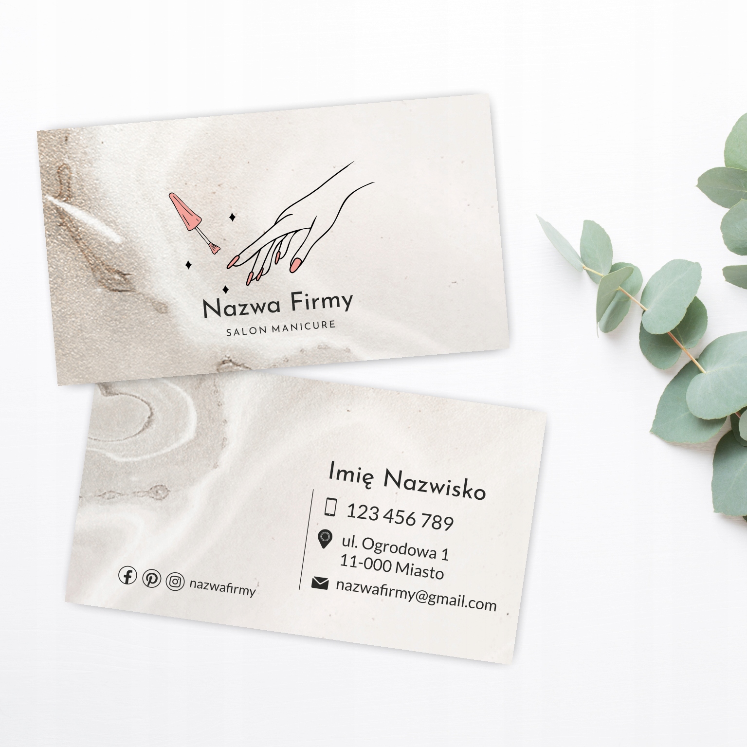 Елегантні візитки з мармуровим мотивом для нейл-стиліста.
