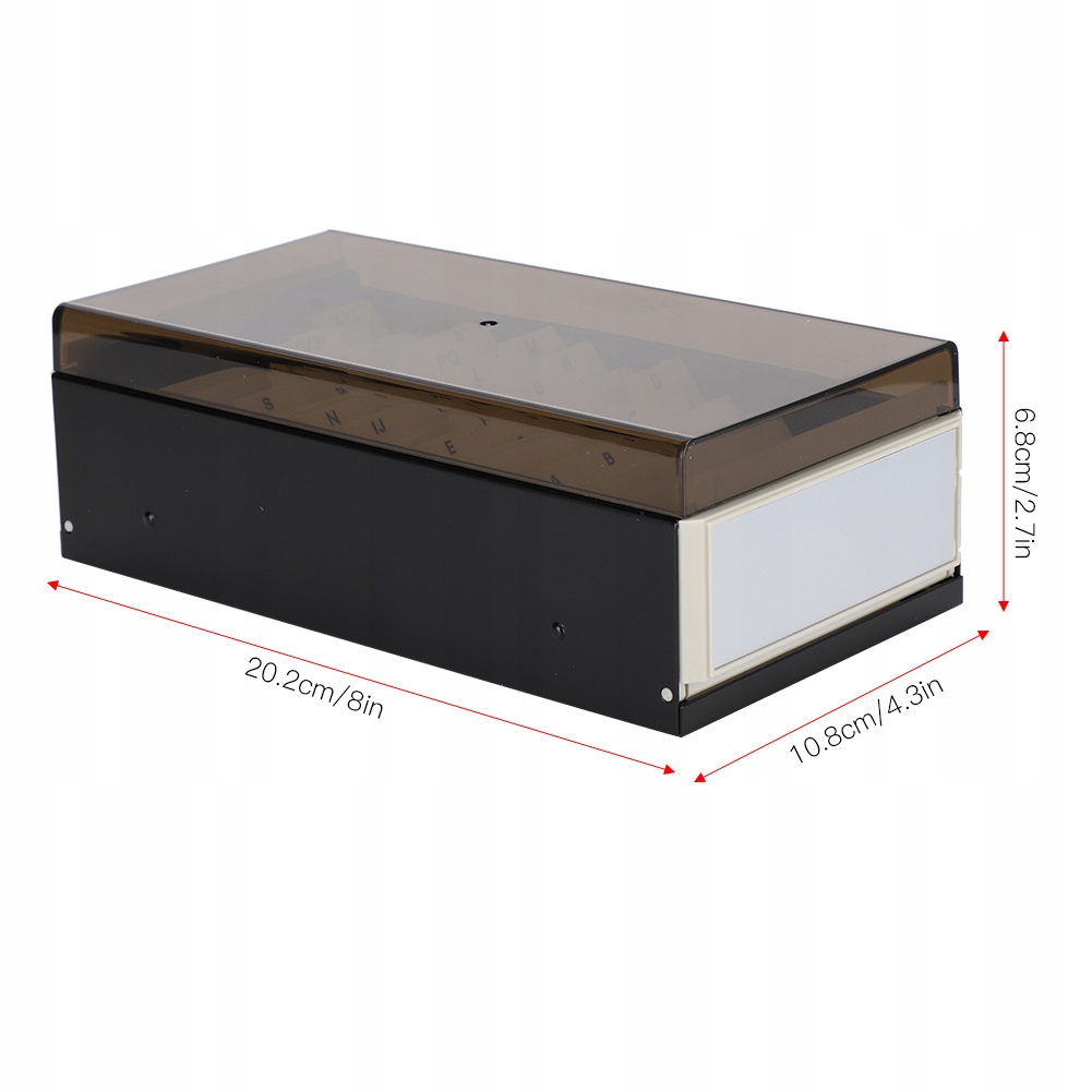1. Направляюча вкладка індексування, яку можна переміщати, керування візитною карткою легше та зручніше. 2. Розширювана коробка для зберігання візиток, яку легко знайти. 3. Прозора пластикова кришка захищає від пилу і дозволяє легко зберігати ваші візитки. 4. Велика ємність для зберігання 600 візитних карток/візитних карток стандартного розміру (картки не входять до комплекту). 5. Ідеально підходить для зберігання та впорядкування візитних карток, корисний у діловому офісі. 6. Індексні закладки ПВХ, з чітким друком, міцні та недеформовані, довгий термін служби.