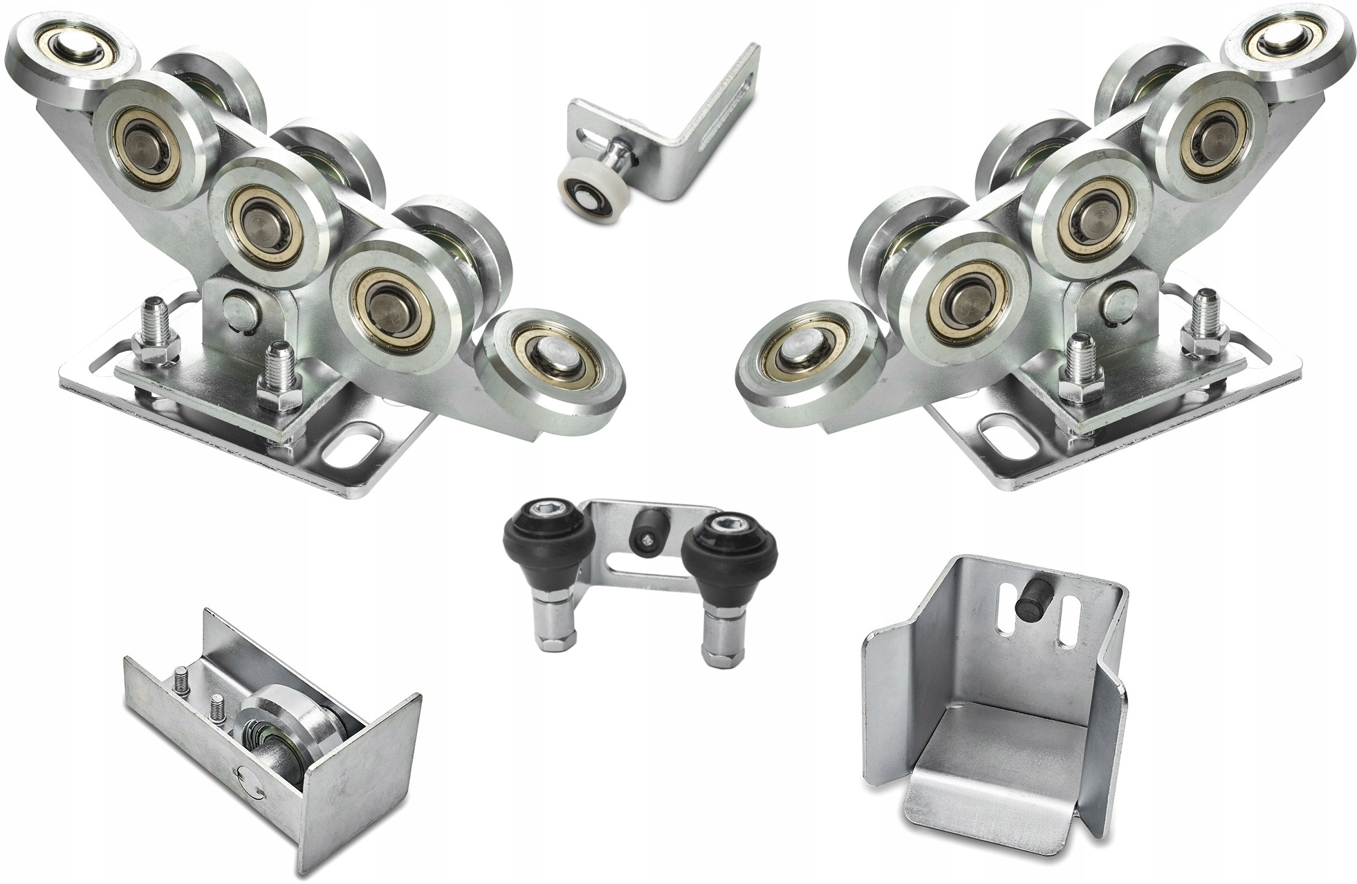 Набір візки з аксесуарами для розсувних воріт - рейки 80x80x5 мм . Коляски мають вертикальну та рівну коригування, що перетворюється на робочу культуру роликів у залізниці.