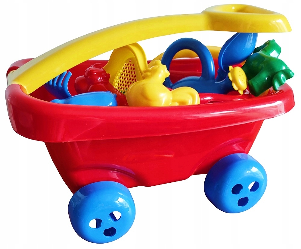 - КОЛЯСКА З РУЧКОЮ для ДИТИНИ, з якою можна грати в пісочниці, на пляжі, в саду та вдома.