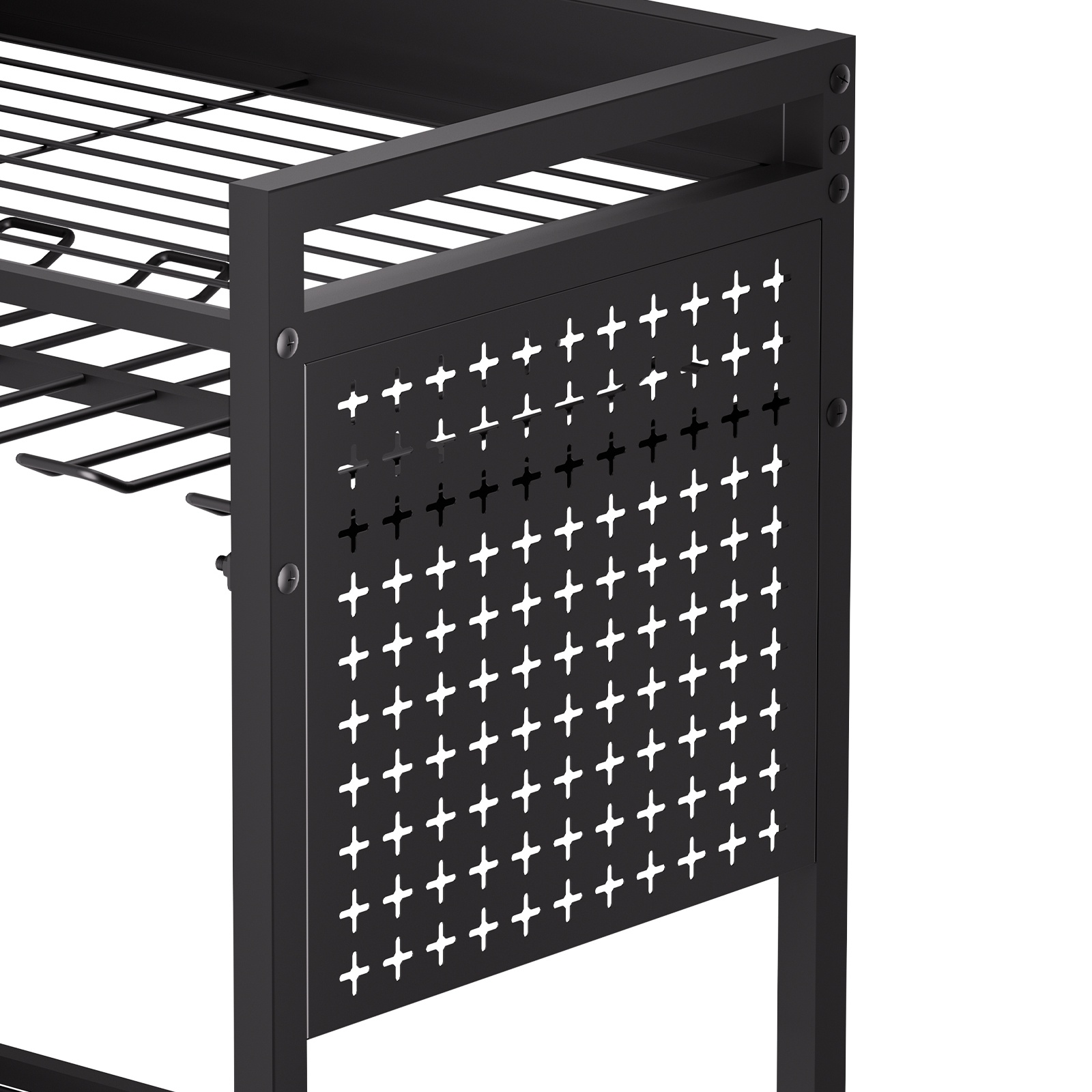 Цей 4-ярусний візок для інструментів має 3 сітчасті полиці, тримач для свердла на 10 отворів, перфоровану пластину для інструментів DIY, лоток для викруток, тримач для гайкового ключа, гачки та кошики для зручного зберігання інструментів і деталей.