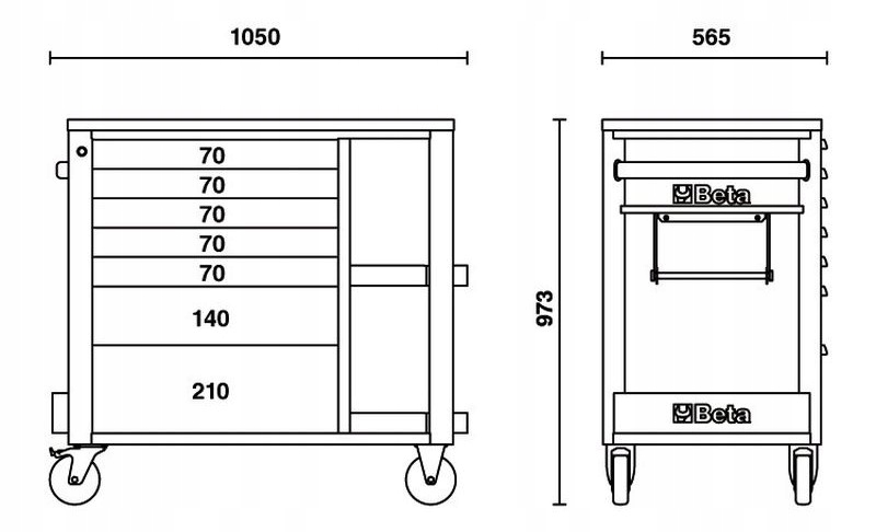 Бета-візок для інструментів із 7 ящиками (588x367 мм) із кульковими напрямними: