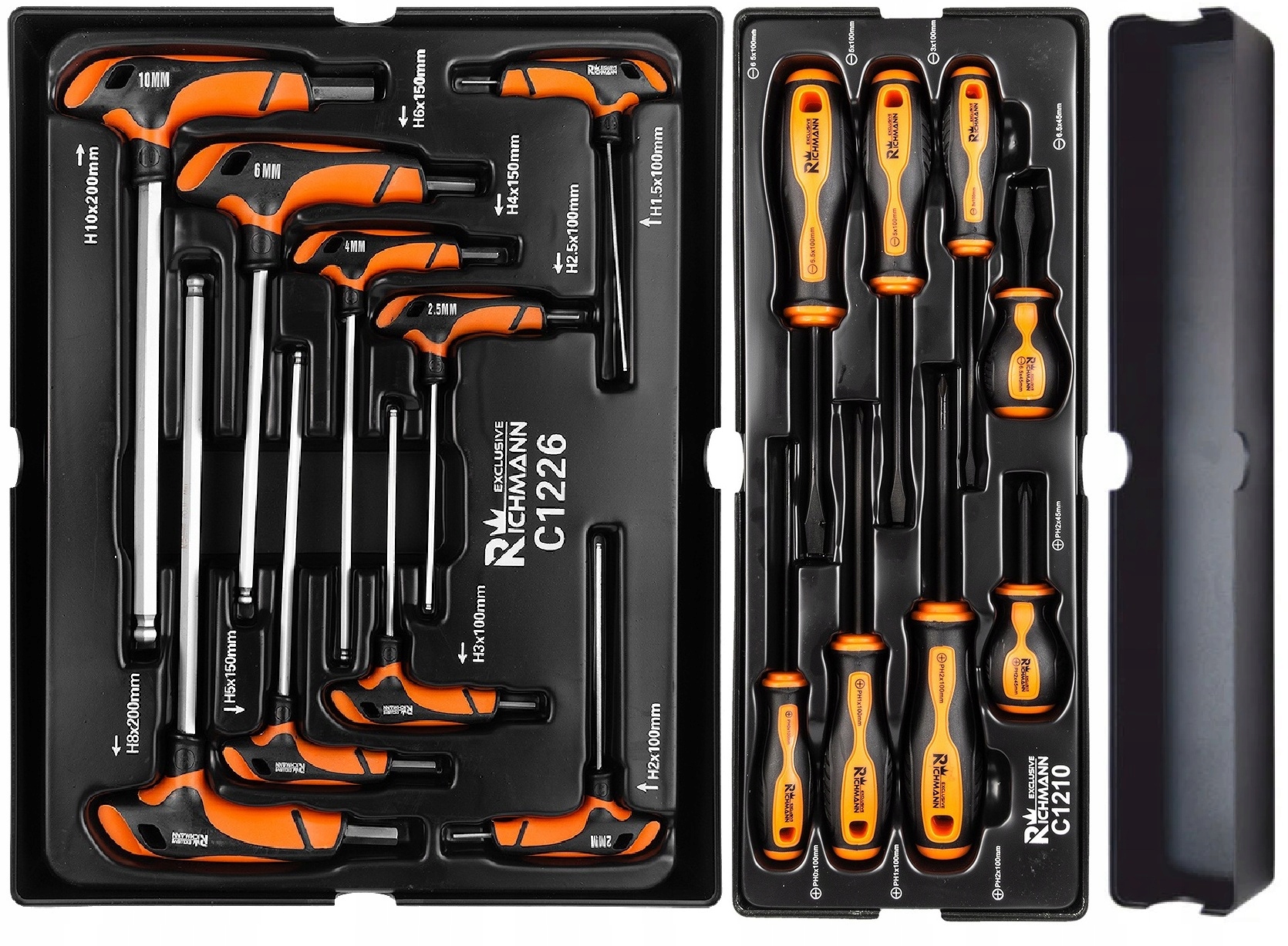 - TORX: T8, T9, T10, T15, T20, T25, T27, T30, T40