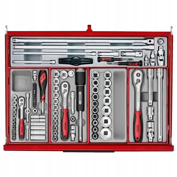 Набір інструментів TengTools 26" PRO35™ Mega Master TKS26R1033T із матово-червоним покриттям — це повна та універсальна колекція, що складається з 1033 елементів, створених Цей мобільний пристрій для зберігання інструментів із 16 шухлядами, створений для професіоналів у промисловості, є ідеальним рішенням для технічного обслуговування та виконання складних завдань. Він складається з трьох ящиків для зберігання інструментів, ящиків для інструментів із 3 шухлядами та ящиків для інструментів із 4 шухлядами. з шарикопідшипниками. Для зменшення зносу ящиків і інструментів кожен блок пройшов 5-ступінчастий процес захисту від іржі 3-значний кодовий замок. Одна з головних особливостей цього набору інструментів Mega Master - це інтеграція системи керування інструментами TengTools, яка забезпечує ефективне управління інструментами втрачених або забутих у проекті. Набір додатково збагачений ударними головками 1/4, 3/8, 1/2 і 3/4 інструменти, комбіновані гайкові ключі, насадки з Т-подібною ручкою, щипці, електричні ручки та напилки. Для більш спеціалізованих застосувань в набір входять гайкові ключі та головки для перевірки, тому він охоплює більшість повсякденних аспектів механічного та промислового інструменту. потреби.