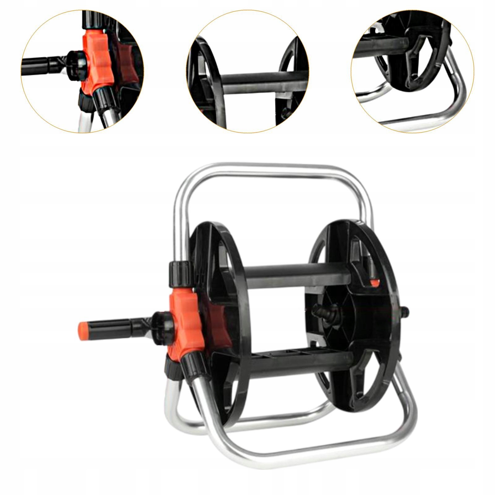 [Міцна конструкція]: виготовлена з алюмінієвих і поліпропіленових матеріалів, ця котушка для шланга забезпечує міцність і довговічність, гарантуючи, що він може витримувати регулярне використання та різноманітні погодні умови