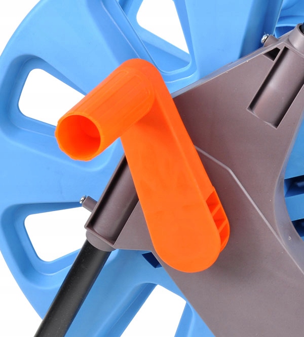 Вільна рукоятка, що обертається, полегшує перемотування шланга, а широка основа забезпечує чудову стабільність.