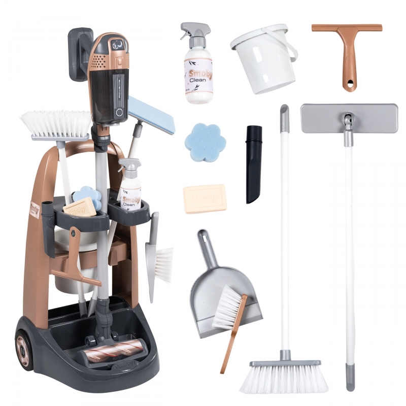 - Подаруйте своїй дитині незабутні розваги та в той же час розвивайте її навички з набором Smoby, який включає пилосос Rowenta! Цей повний набір для прибирання заохочує малюків активно брати участь у повсякденних домашніх справах. Реалістичний пилосос зі звуковими та світловими ефектами робить прибирання захоплюючим. Крім того, набір включає мітлу, швабру, мітлу з совком, відро, губку, мило, пляшку миючої рідини та засіб для миття вікон, щоб забезпечити повний спектр аксесуарів для прибирання. Завдяки цьому діти розвивають координацію рук і очей, дрібну моторику, самостійність і відповідальність. Гра в прибирання не тільки розважає, але і навчає, розвиває уяву і готує до виконання домашніх справ. Цей компактний набір ідеально підходить для маленьких ручок, а міцні та безпечні матеріали забезпечують тривалу гру. Нехай ваша дитина отримує задоволення від навчання та розвитку, вчиться при цьому позитивно ставитися до домашніх справ!