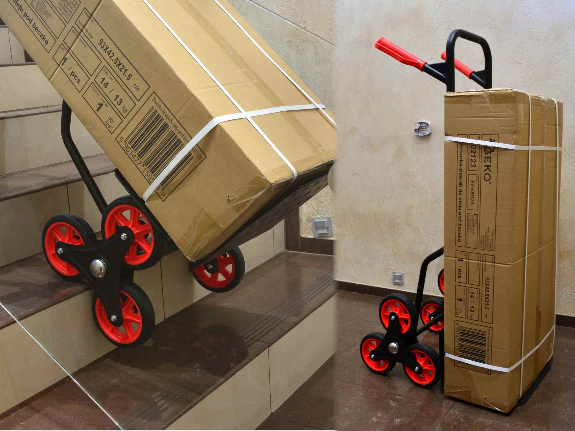 Шестиколісна конструкція дозволяє транспортувати речі вгору та вниз по сходах
