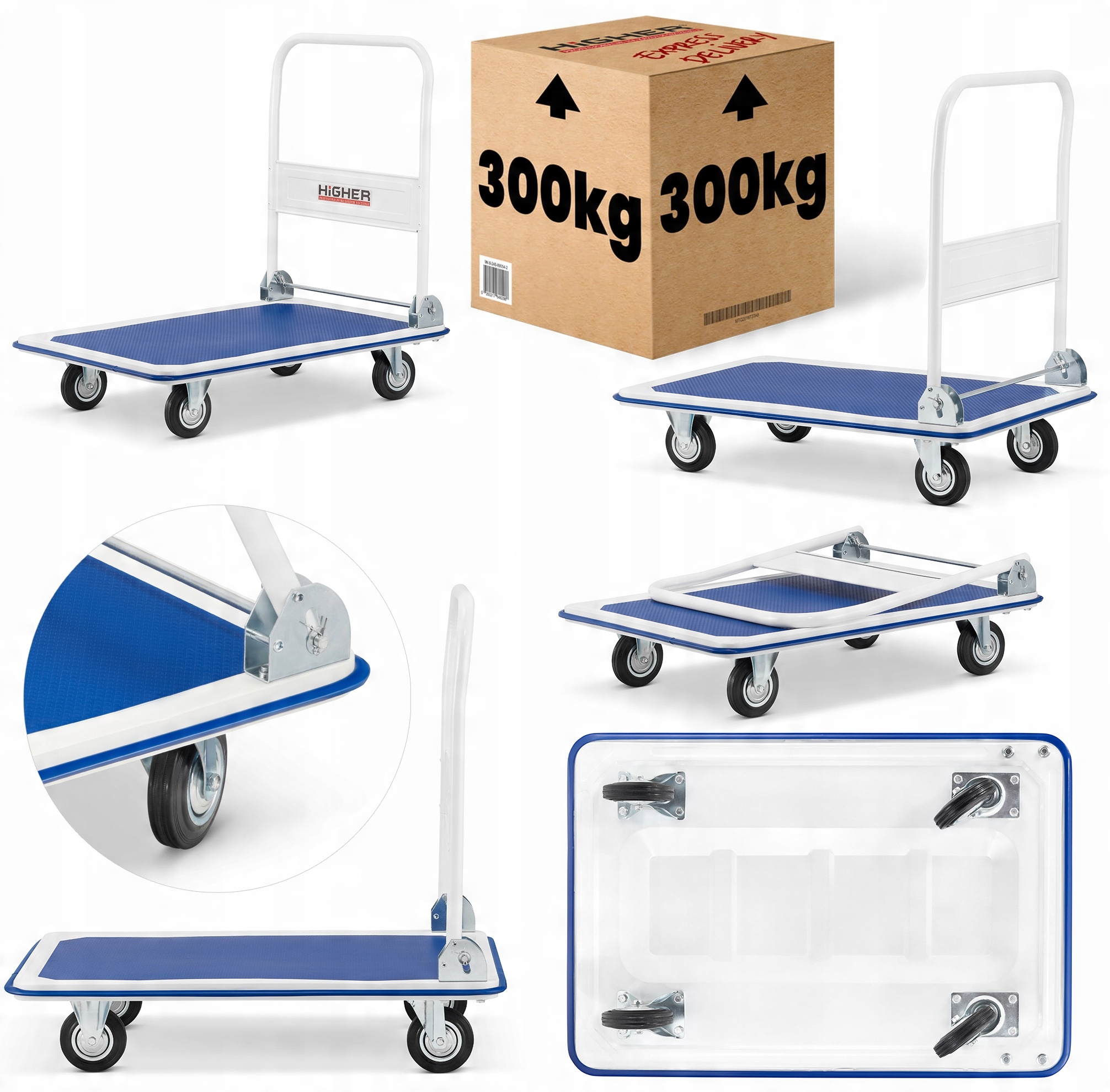 Професійний платформний складський візок HIGHER вантажопідйомністю 300 кг