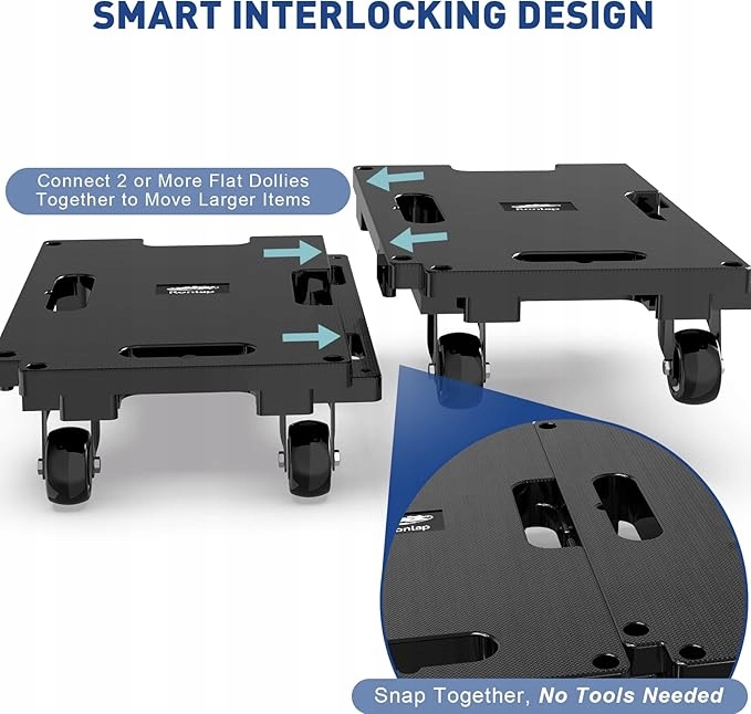 - Поєднуються: завдяки унікальній Завдяки інноваційному дизайну ви можете поєднати два або більше плоских візків разом, щоб переміщувати більші предмети відповідно до ваших конкретних вимог. Просто закріпіть два або більше плоских візка, не потрібні інструменти чи матеріали