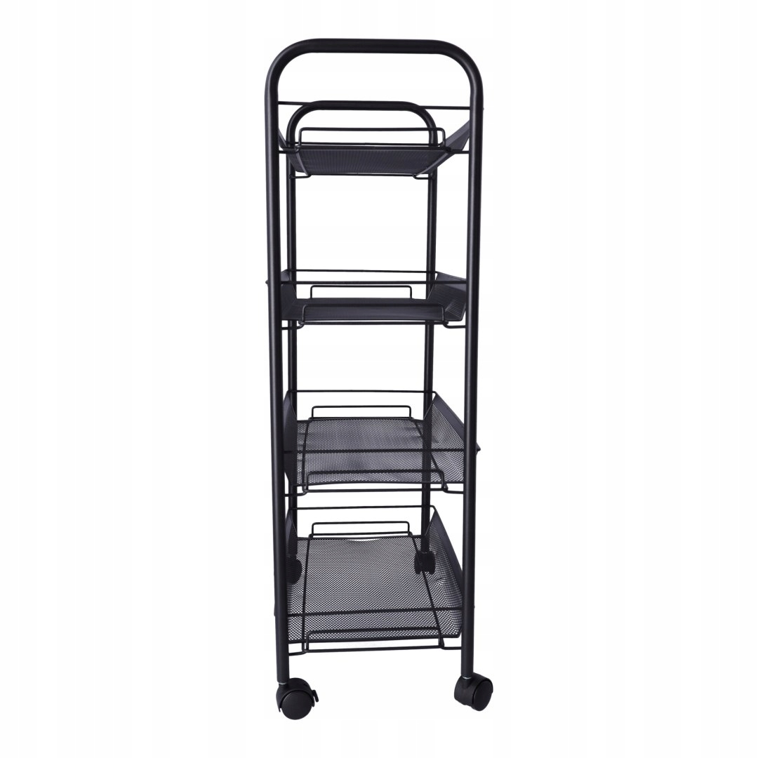 Багатофункціональна, мобільна, чотирирівнева шафа ідеально використає вільний простір у вашому будинок, офіс чи гараж. , перукарня. Простий дизайн робить полку універсальною і практичною. Багатофункціональна шафа на колесах ідеально підходить для кухні або комори як додаткове місце для зберігання харчових контейнерів, баночок або засобів для чищення. У чотирьох кошиках є величезні можливості для зберігання. Продукт, безперечно, також добре працюватиме у ванній кімнаті, де він полегшить організацію косметики, рулонів туалетного паперу, рушників і засобів для чищення будинку. Металеву шафу також можна використовувати як цікаве доповнення офісу чи підвалу. Багатофункціональна полиця має чотири колеса, які забезпечать легке переміщення з одного місця на інше, коли це необхідно. Виріб виготовлено з матеріалів найвищої якості, що забезпечує міцність, стабільність і довговічність.