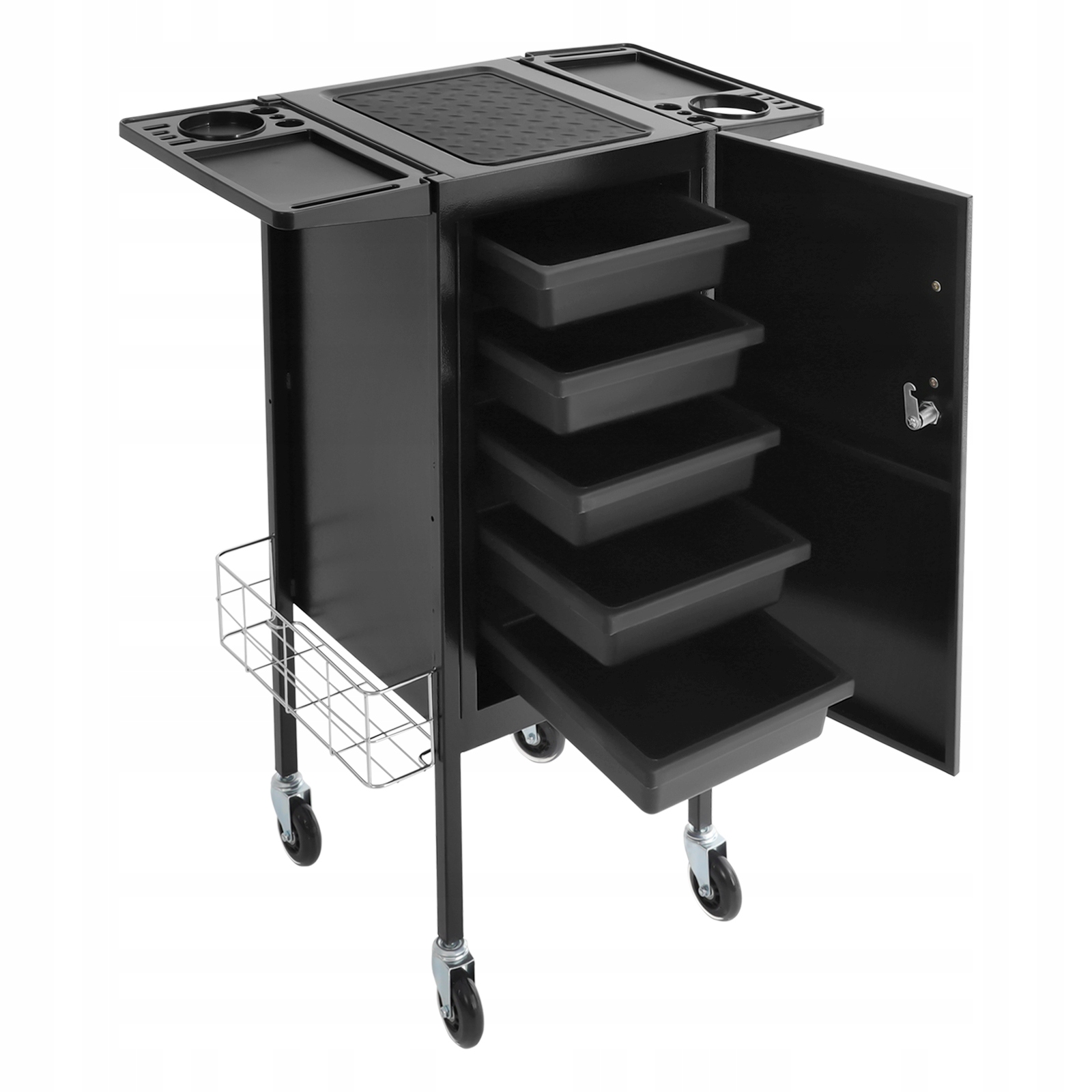 - Організоване зберігання та легкий доступ до інструментів мають вирішальне значення в індустрії краси та перукарні. Виготовлений із матеріалів найвищої якості, цей візок для зберігання у вітальні забезпечує надійну довговічність. Оснащений колесами, він дозволяє гнучко пересуватися різними робочими просторами, а його характерний дизайн і потужна продуктивність роблять його ідеальним помічником для експертів індустрії краси.