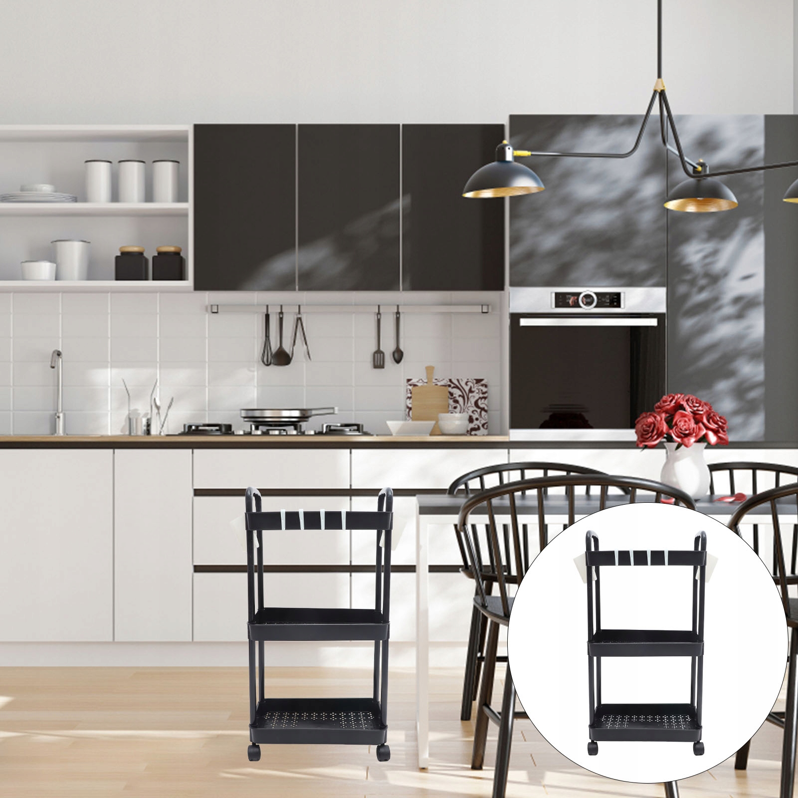 Конструкція візка для зручного зберігання, підходить для зберігання кухонних пляшечок зі спеціями та інших туалетних приналежностей.