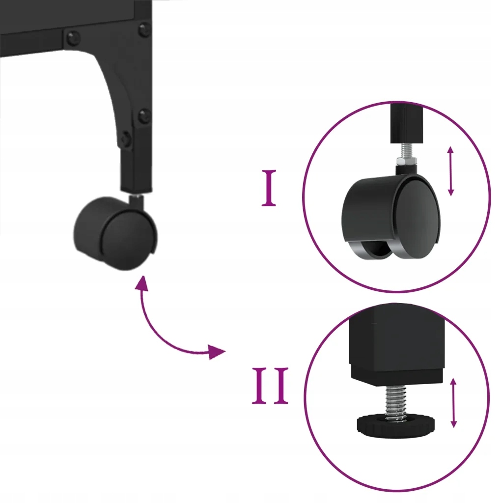 - Свобода збирання: цей кухонний візок можна використовувати двома способами: поставити його на підлогу з регульованими ніжками для стійкості на нерівних поверхнях або прикріпити колеса для зручного переміщення.