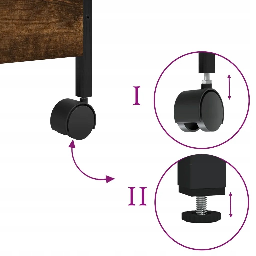 - Свобода збирання: цей кухонний візок можна використовувати двома способами: поставити його на підлогу з регульованими ніжками для стійкості на нерівних поверхнях або прикріпити колеса для зручного переміщення.