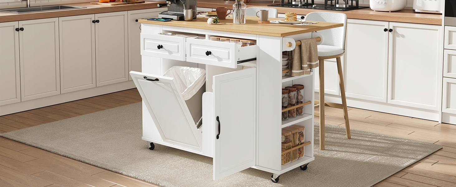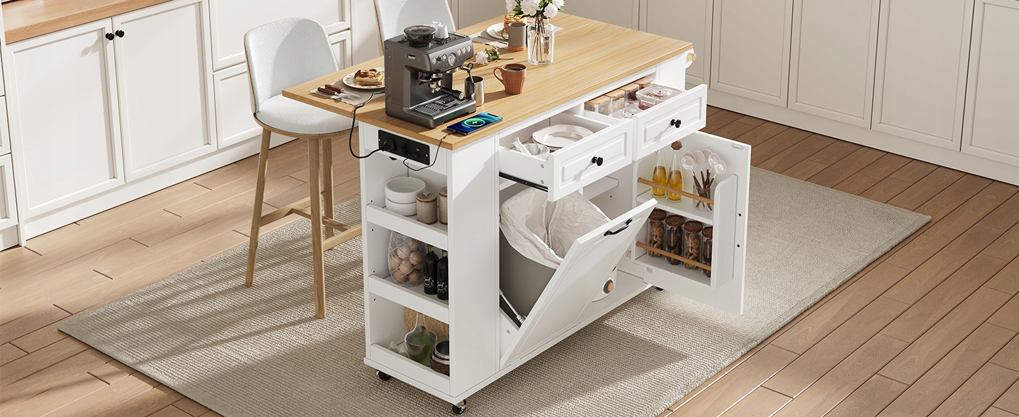 Візок кухонний | Складна стільниця | USB, Type-C і розетка живлення | Зберігання сміттєвого бака