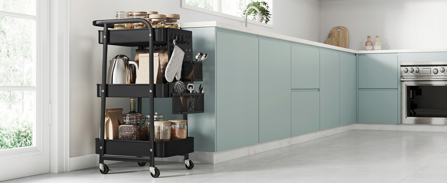 ✅ Мобільність -полиця оснащена поворотними колесами, тому ви можете легко змінювати положення візка,