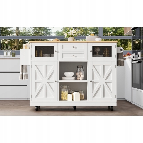 Стільниця виготовлена з високоякісної МДФ плити з обробкою, що імітує структуру дерева. Цей міцний матеріал стійкий до навантажень і стресів, пов'язаних з повсякденним використанням. Він ідеально підходить як кухонна стільниця для нарізання овочів, приготування їжі тощо. Шухляди мають елегантні сріблясті металеві ручки ергономічної форми, завдяки чому їх легко відкривати.