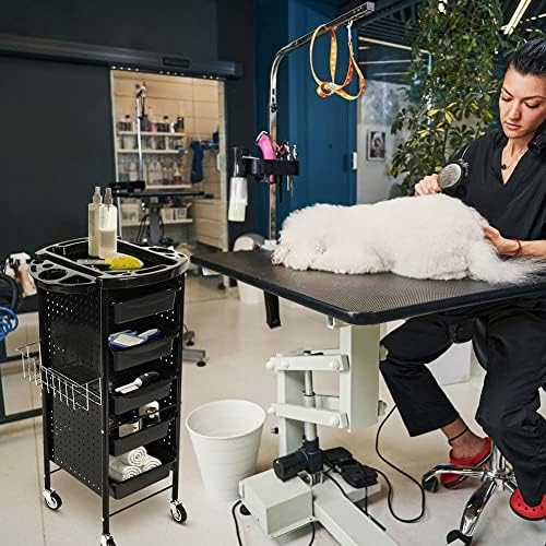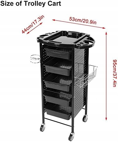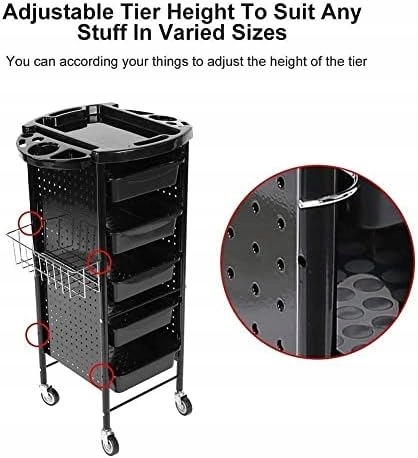 - 【Велика місткість】 Оснащено 6 полицями та підвісні кошики, в яких можна зберігати більше, і добре організовані відділення. Великий простір для зберігання, металевий каркас, стильний і практичний багатошаровий дизайн забезпечують більше місця для косметики, косметичних засобів, інструментів для стрижки та інших аксесуарів. Верхня робоча зона має кілька відділень для ножиць, пляшечок з розпилювачем та багато іншого. Легко чистити, важливі предмети домашнього вжитку та гнучка економія місця.